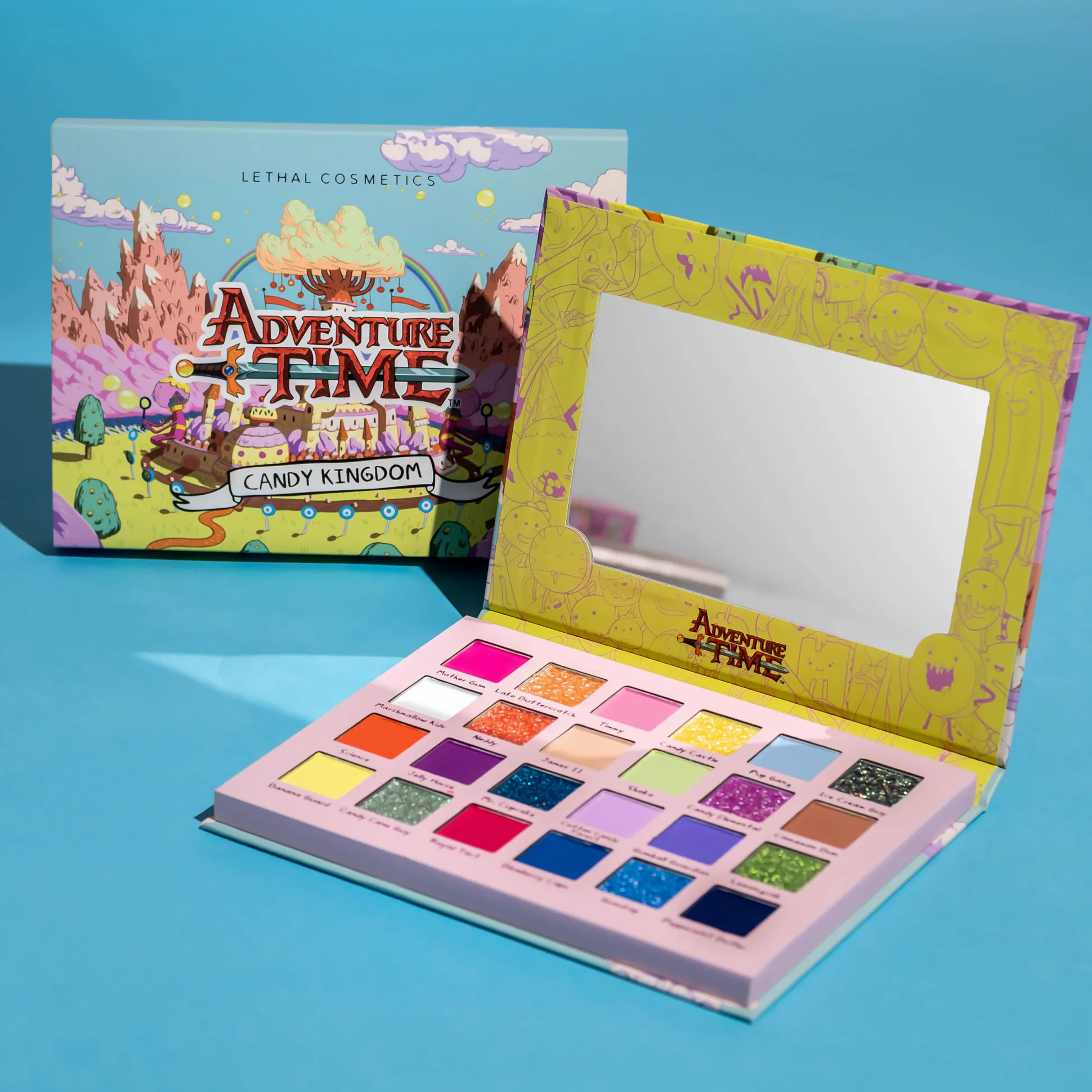 Met het officiële Adventure Time Candy Kingdom oogschaduwpalette haal je een echte kleurexplosie uit Ooo zo je badkamer in. Of je nu meer een Princess Bubblegum-, Marceline- of Lumpy Space Princess-vibe hebt – er is een tint voor elke mood en elke quest.