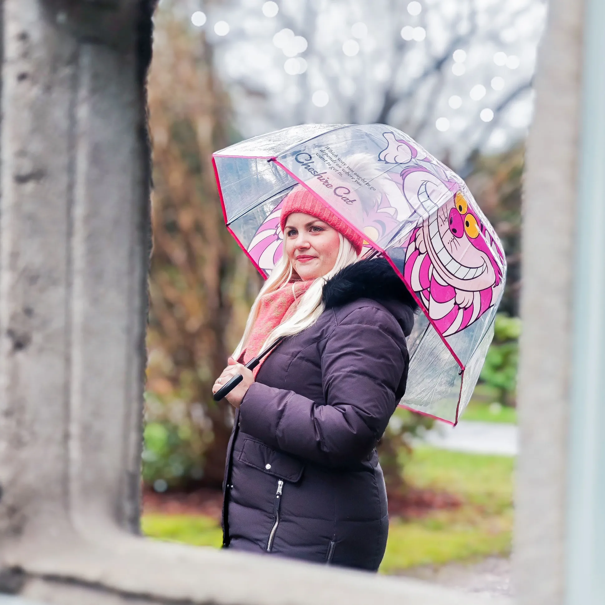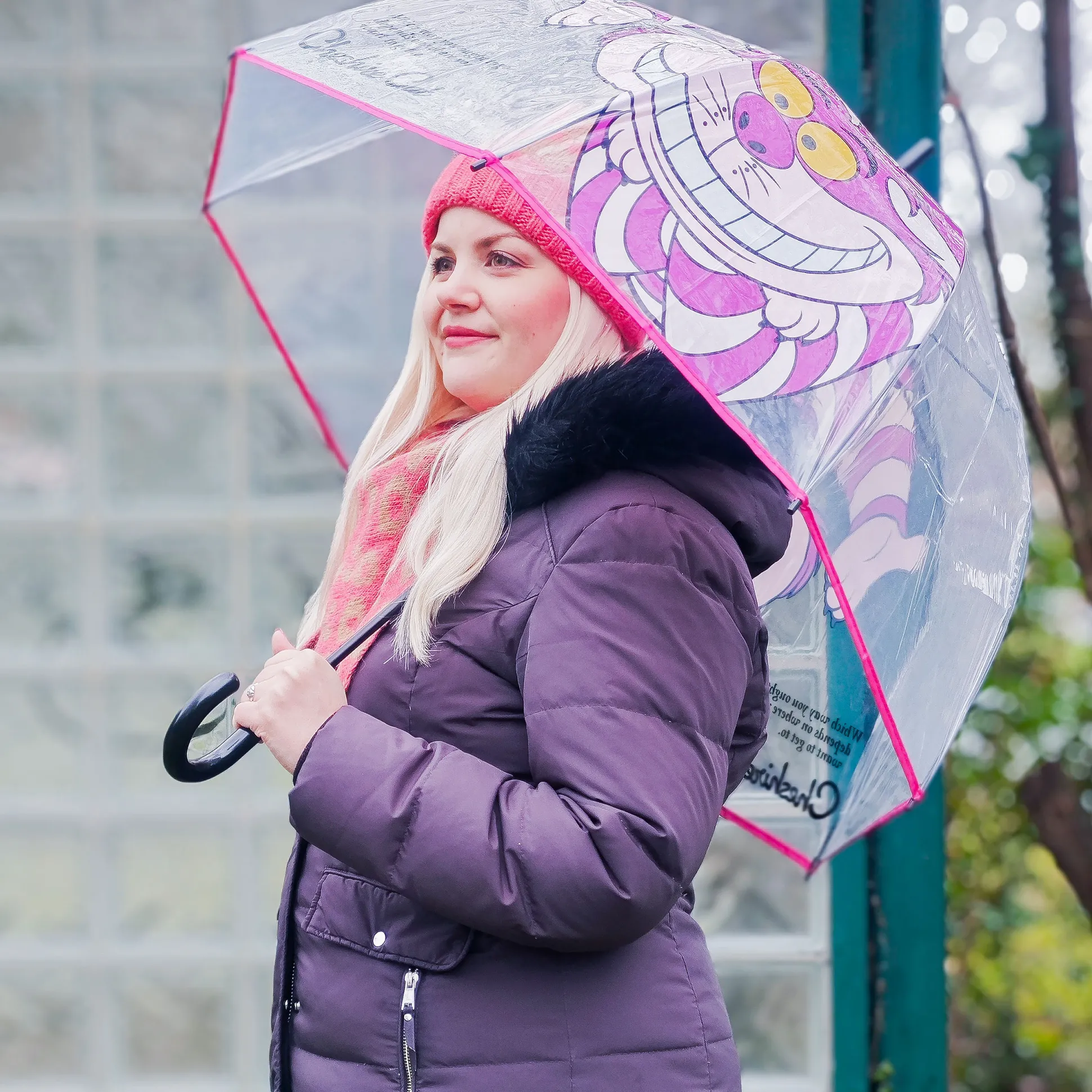 – Transparante stokparaplu met Cheshire Cat-motief