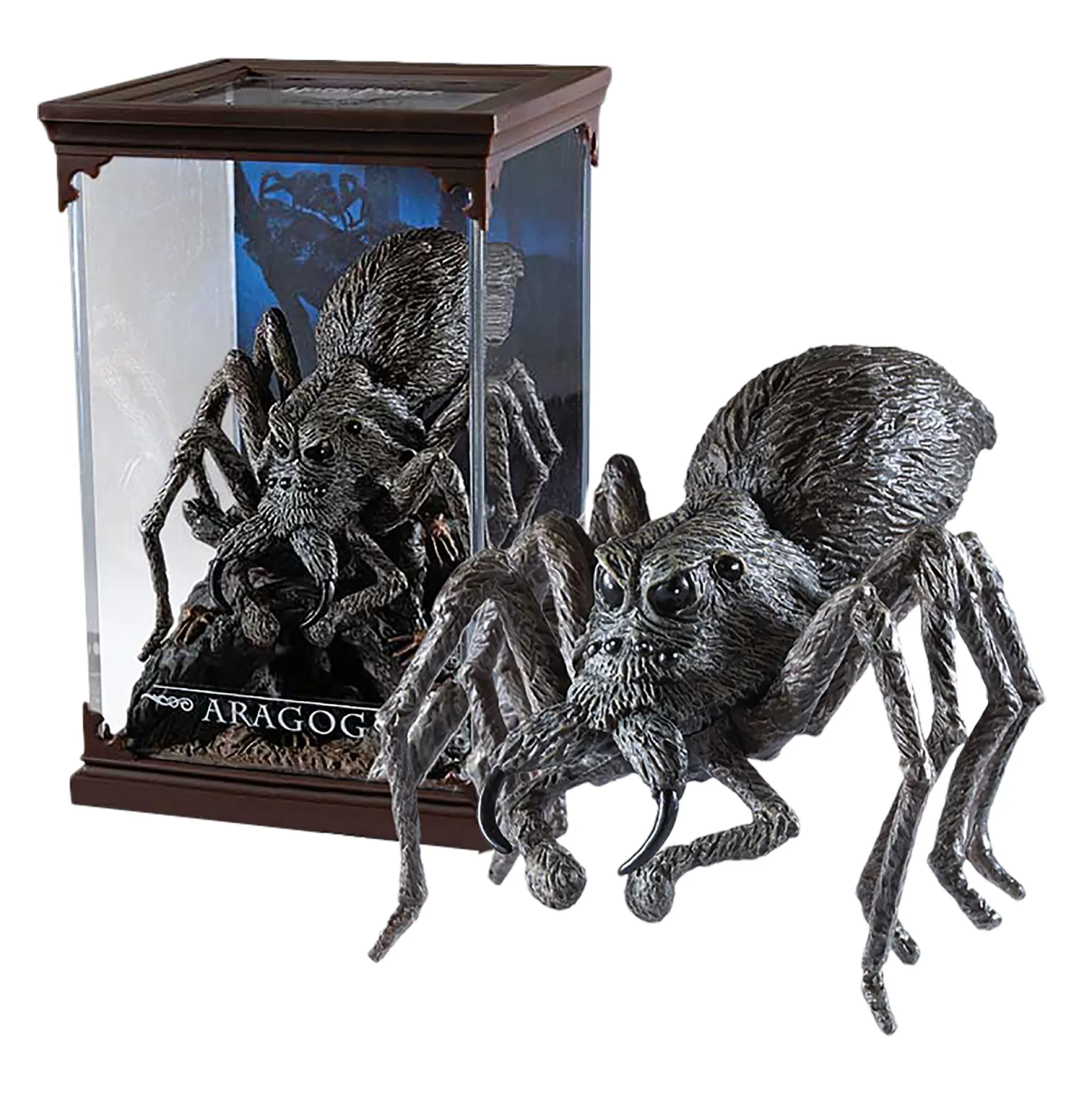 Het gedetailleerde en met de hand beschilderde figuur van de Acromantula spin Aragog is onderdeel van een verzameling Magische Wezens uit de Tovenaarswereld van Harry Potter. Andere figuren in deze serie zijn Hedwig, Dobby, Basilisk, Hongaarse Hoornstaart, Oekraïense IJzerbuik, Scheurbek, Dementor, Fawkes, Nagini, Gringotts Kobold, Kruimel, Troll, Fluffy, Schurfie, Cornish Pixie, Mandragora en de Grindylow. Elk van deze figuren wordt geleverd in een nobel en afneembaar display. Dit maakt ze niet alleen een onmisbaar verzamelobject, maar ook het ideale cadeau-idee voor elke Potterhead.