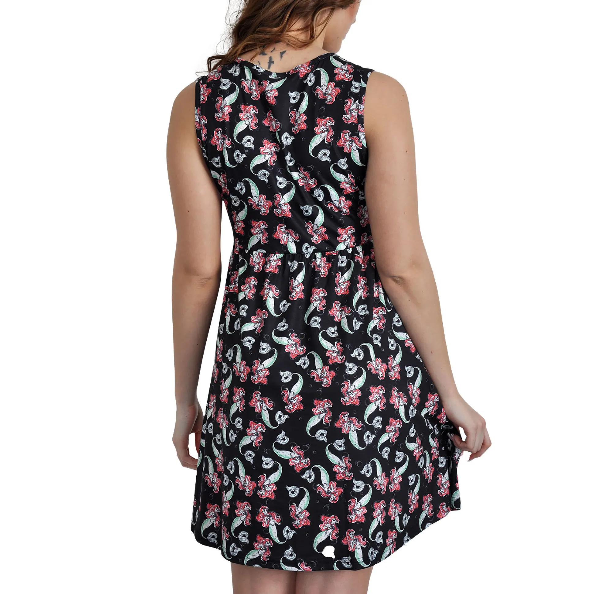 Klaar om deel uit te maken van jouw eigen wereld? Met de Ariël Allover Mini-jurk haal je de magie van je favoriete zeemeermin zo je dagelijkse leven in – zonder vinnen! Deze officieel gelicentieerde Disney-jurk is exclusief verkrijgbaar bij Elbenwald en schittert met een opvallende Ariël allover-print, zodat iedereen weet dat jij de under-the-sea vibe verspreidt. De mouwloze, getailleerde pasvorm met elastische tailleband zit heerlijk, of je nu op een strandfeestje bent of lekker op de bank hangt. De lichte, zwierige stof in zwart met felle kleuren brengt meteen zomerse sferen in huis. Ariël had je zo in haar crew opgenomen – en Botje en Sebastiaan zouden je outfit helemaal goedkeuren!