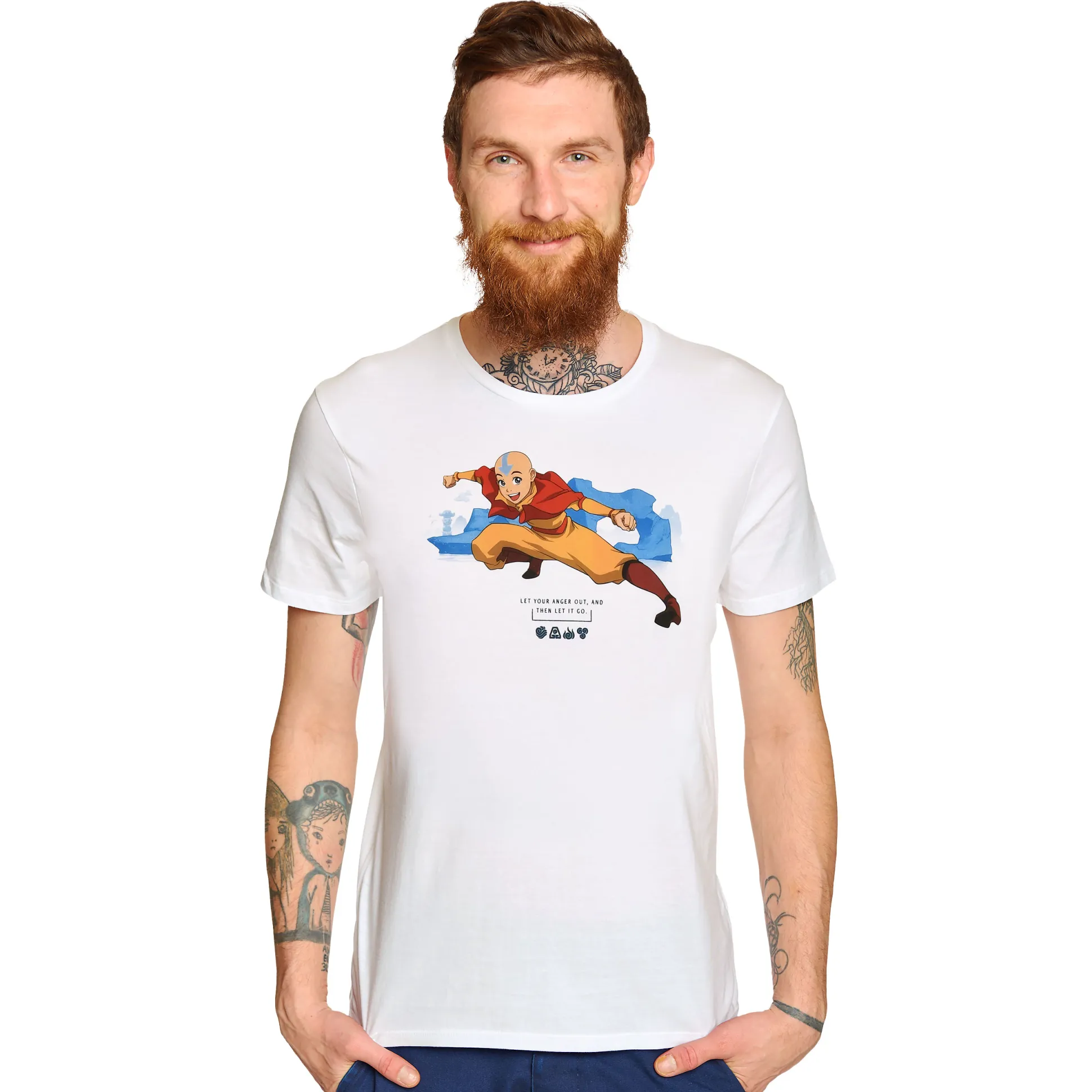 Beheers je dag als een luchtmeester: dit officieel gelicentieerde T-shirt van Avatar: De Legende van Aang zet Aang in de spotlights. Wit, rechte pasvorm, klassieke ronde hals, makkelijk te combineren en klaar voor elke missie. Perfect voor con, bank of je volgende trainingsvlucht op Appa.