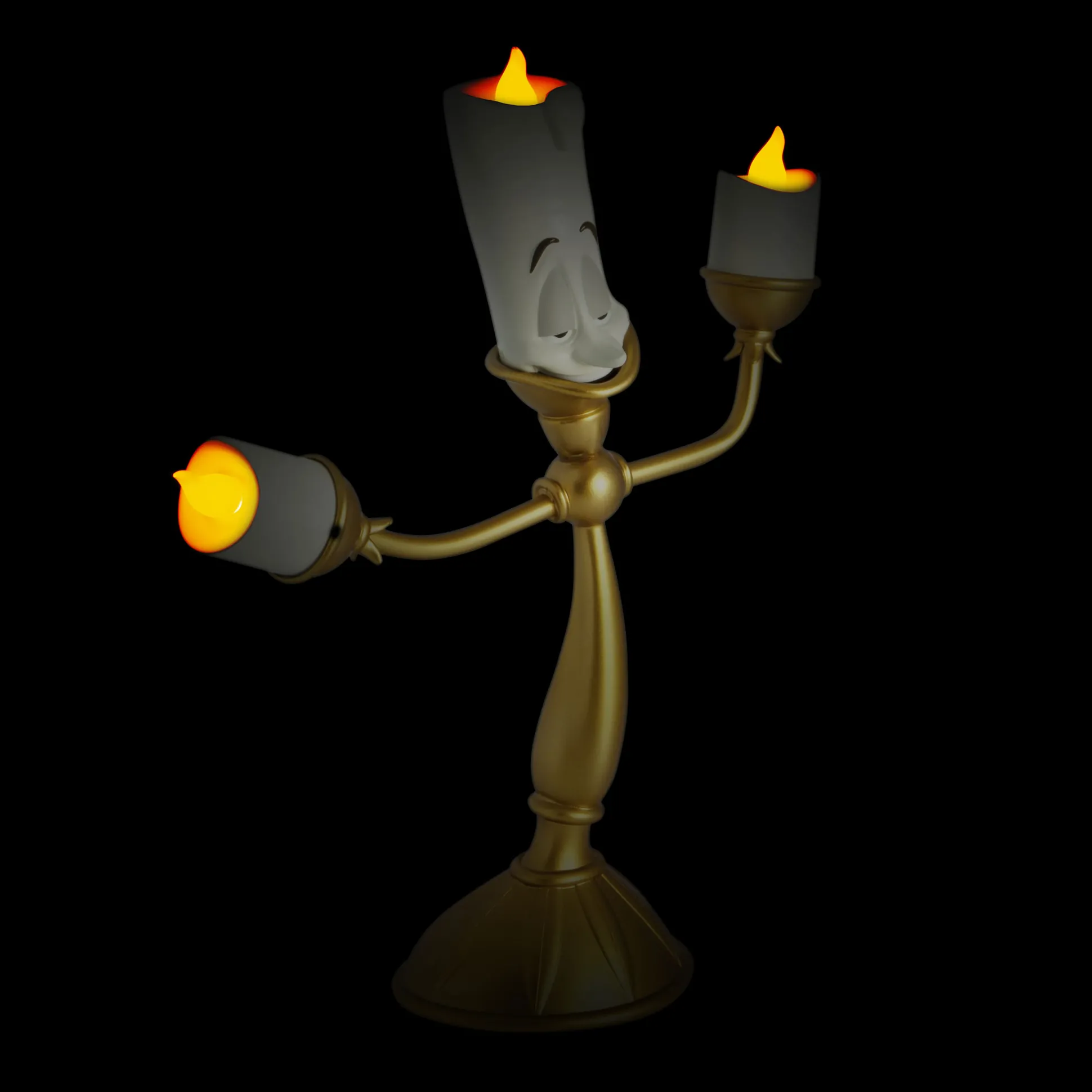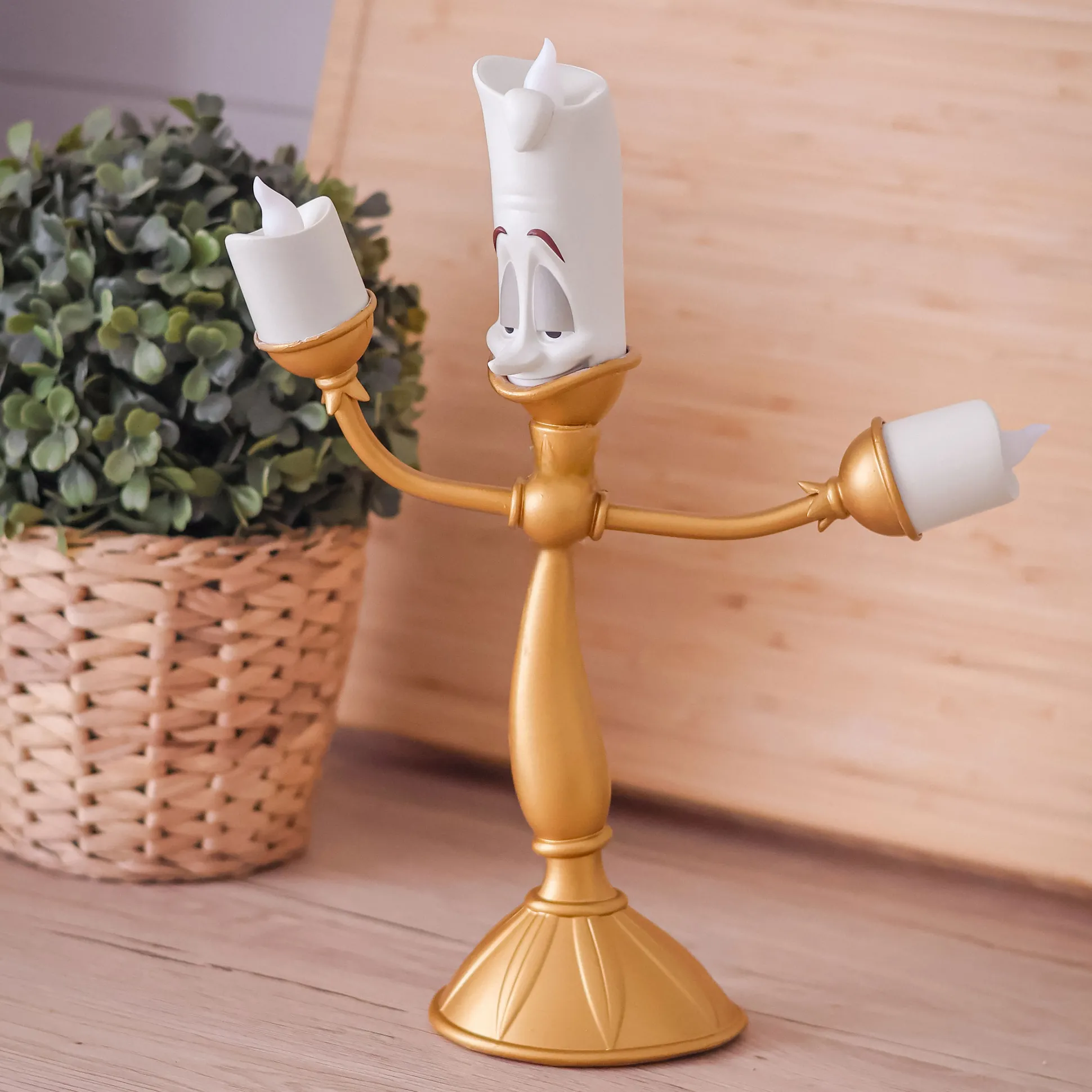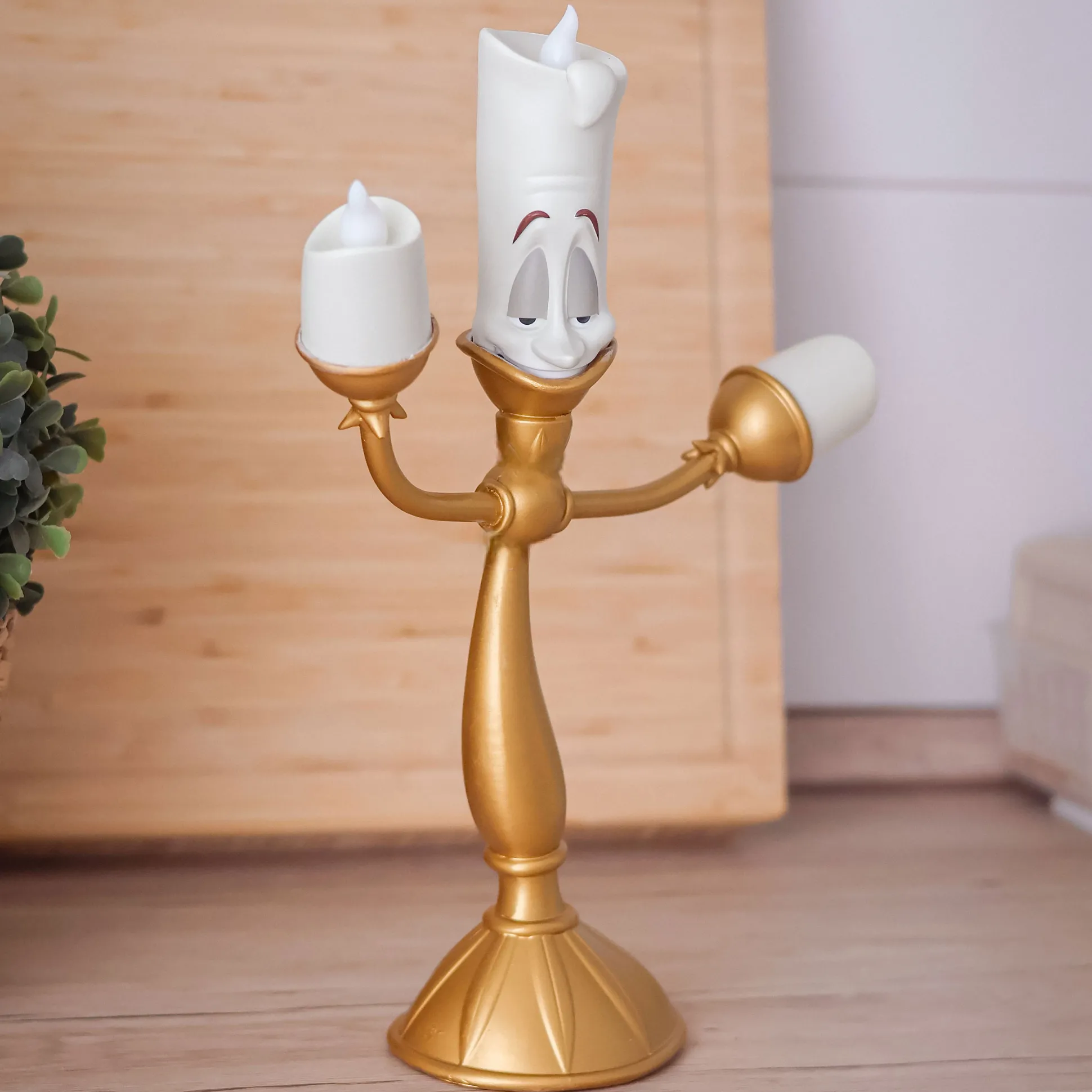 Verlicht je leven met een vleugje Disney-magie! Onze officieel gelicentieerde Lumière Tafellamp uit Belle en het Beest brengt de charme en elegantie van de betoverende Disney-klassieker rechtstreeks naar je huis. Getrouw ontworpen naar de levendige kandelaar Lumière, is deze lamp een echte blikvanger voor elke Disney-verzamelaar. Dankzij de batterijvoeding kun je Lumière overal plaatsen waar je wat extra licht nodig hebt. Of het nu op je nachtkastje, bureau of boekenplank is – Lumière zorgt met zijn warme licht en charmante glimlach altijd voor een gezellige sfeer. Mis de kans niet om dit lieve personage in huis te verwelkomen!