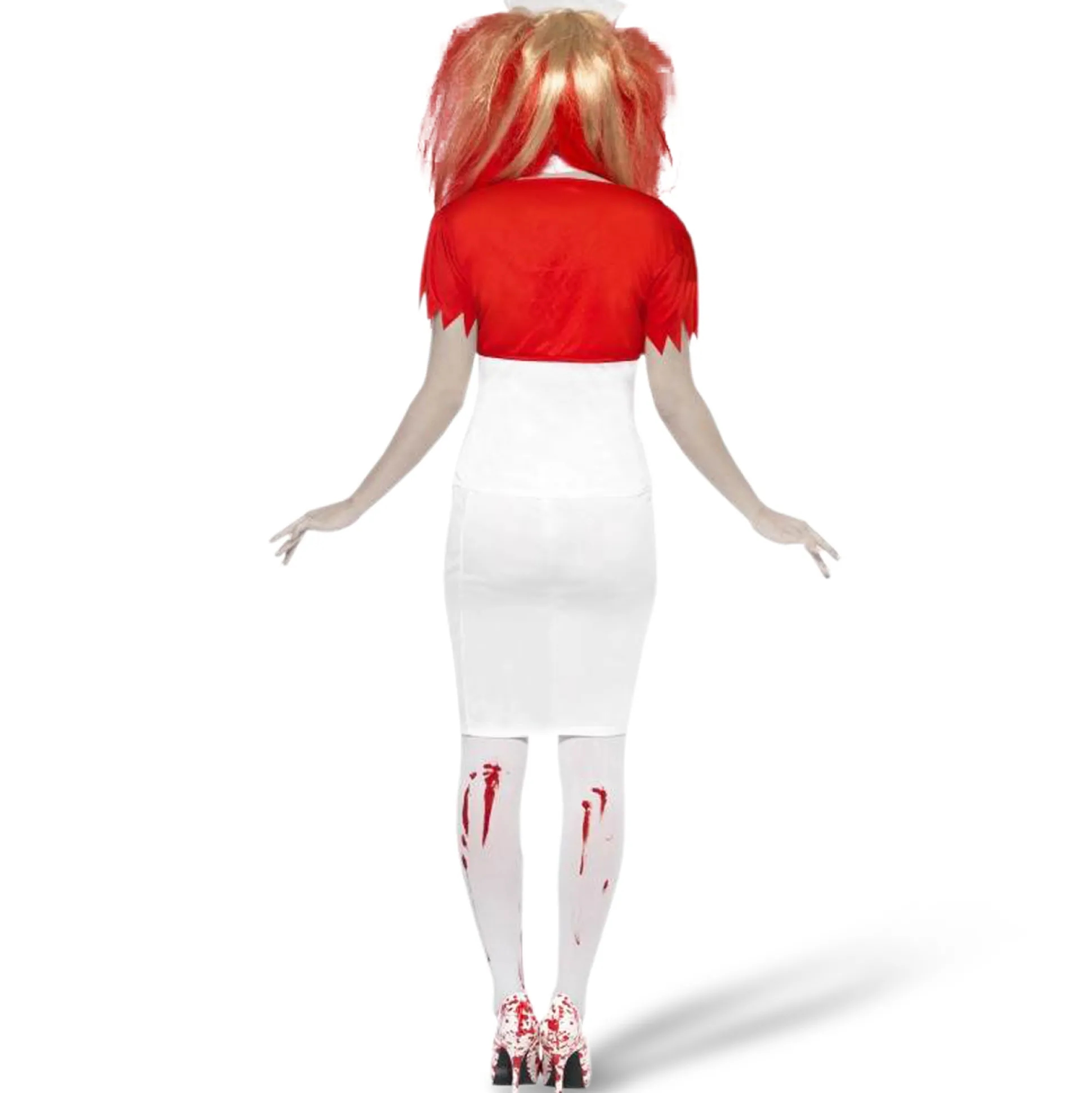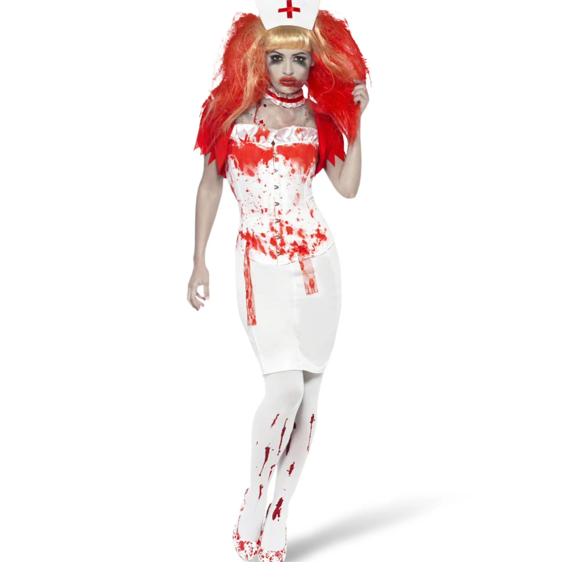 Deze kostuumset is ideaal voor elke verpleegster die ook in haar vrije tijd van het bloederige houdt en graag als zombie op carnaval verschijnt.