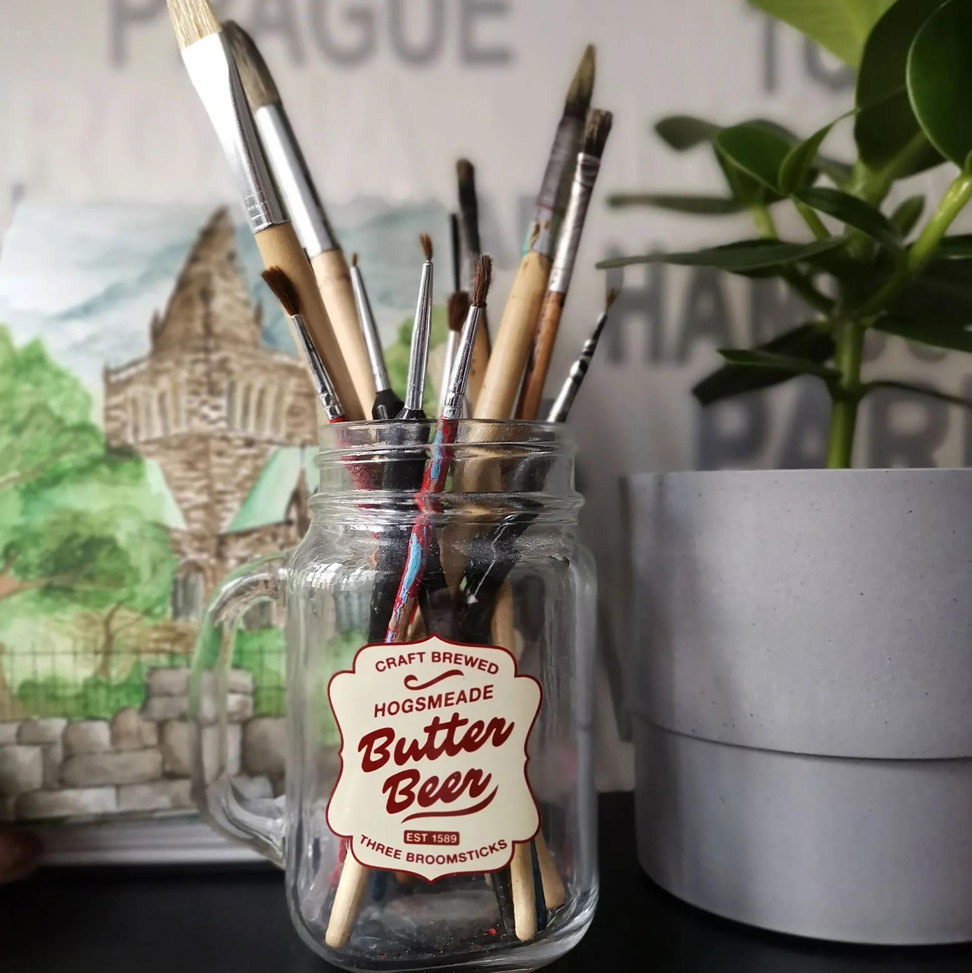 Het solide glas met handvat is geschikt voor warme en koude dranken en dankzij de schroefdop wordt je boterbiergenot door niets verstoord. En zodat je geen uil naar Hogsmeade hoeft te sturen, hebben we het recept bijgevoegd. Proost!