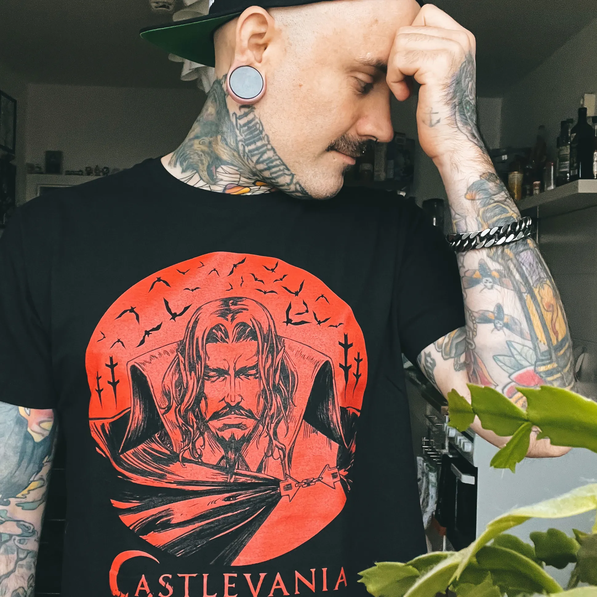 Geen poespas, gewoon pure vampiervibes: zwart, bold design, klaar. Combineer ‘m met jeans, een leren jack of je favoriete jas — cape optioneel. Perfect voor iedereen die van Castlevania houdt, met Dracula meeleeft (of hem jaagt) en de garderobe wil opkrikken met een shot gotische stijl.
