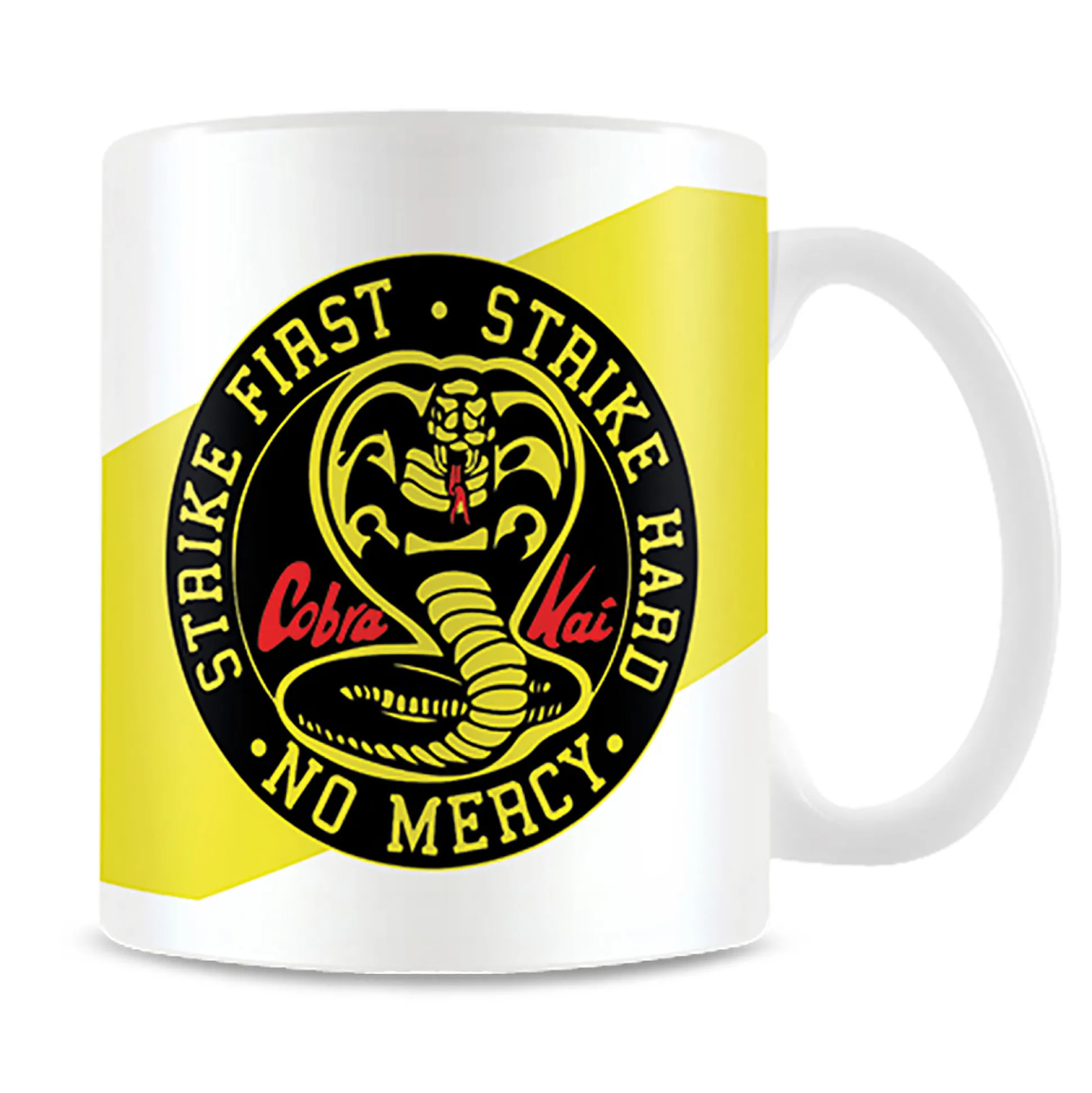 Strike first, sip hard — geen genade voor slaperige ochtenden. Met de Cobra Kai mok wordt je bureau een dojo. Het iconische ‘Strike First. Strike Hard. No Mercy.’-logo loopt als bedrukking rondom, zodat iedereen weet: jouw koffie heeft een zwarte band. Officieel gelicentieerd, wit keramiek, 315 ml — geschikt voor vaatwasser en magnetron. Perfect voor koffie, thee of de overwinning na de training. Een topcadeau voor fans van Cobra Kai, het vervolg op Karate Kid.