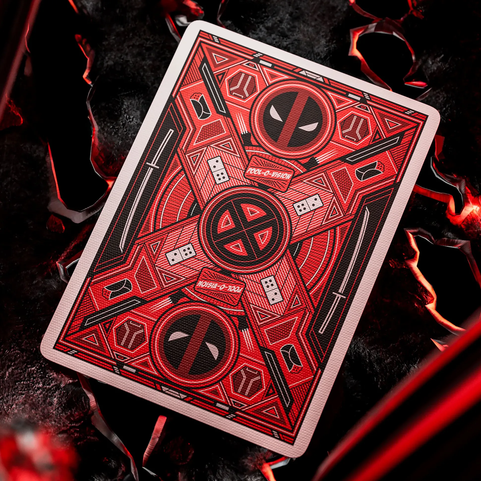 Officieel gelicentieerde Marvel-speelkaarten: een compleet deck van 52 kaarten plus 2 jokers. Vol Deadpool-swag en met bekende gezichten — Wolverine, Cable, Ajax, Vanessa en Blind Al. Geleverd in een doos met metallic look en reliëfdetails, net zo mooi in de vitrine als bij een dramatische tafel-slam.