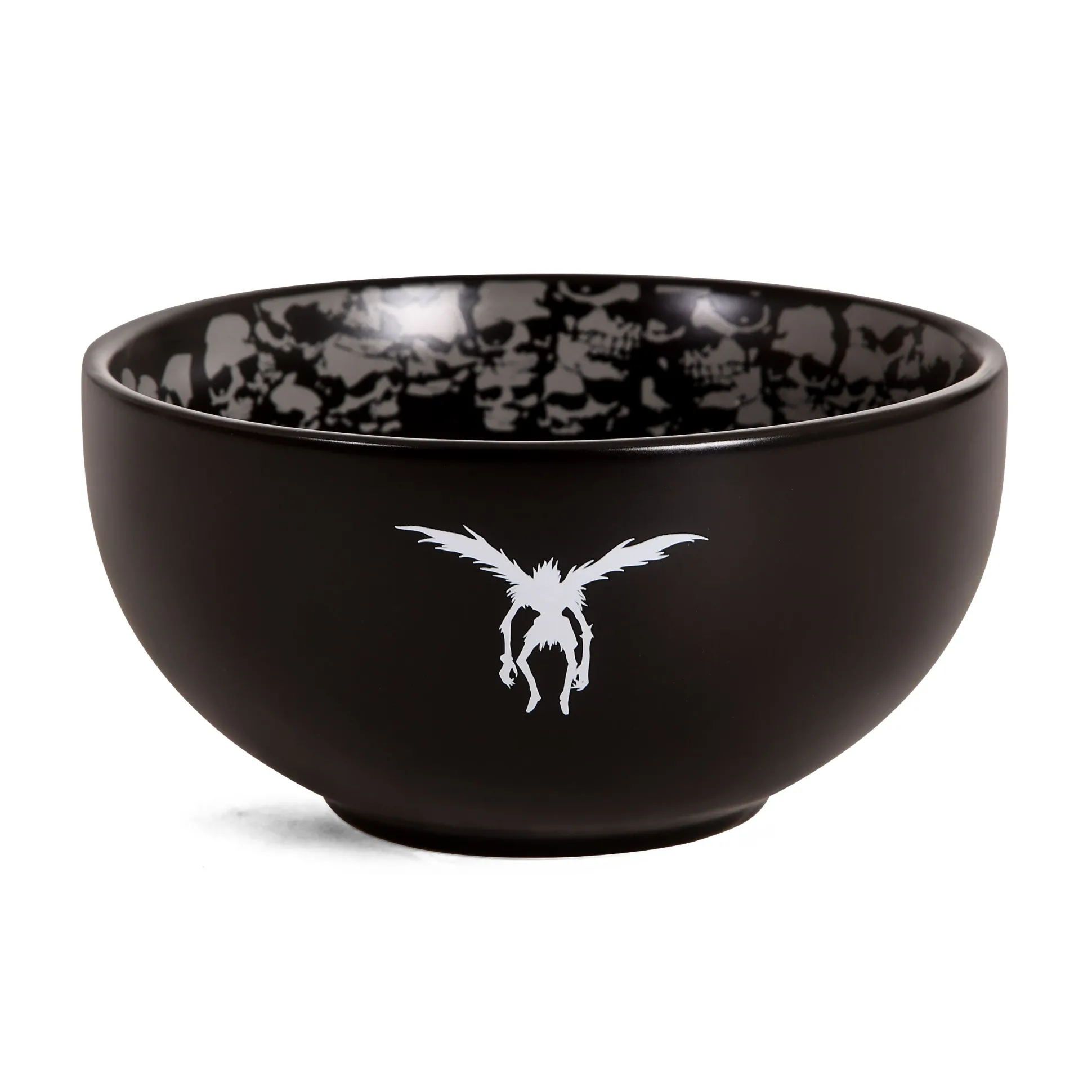 Ontbijt met een Shinigami? Ryuk zegt ja—zeker als er appels zijn. Deze officieel gelicentieerde Death Note mueslikom zet de appel in de spotlight: logo en Ryuk aan de buitenkant, een appel aan de binnenkant, plus een doorlopende schedelprint. Inhoud 600 ml (Ø 14,5 cm; hoogte 7,5 cm) – genoeg tot je volgende trip naar de Shinigami-wereld. Vaatwasser- en magnetronbestendig. Kleuren: zwart en grijs. Perfect voor muesli, ramen of je geheime appelvoorraad. Geen namen nodig—alleen een lepel.