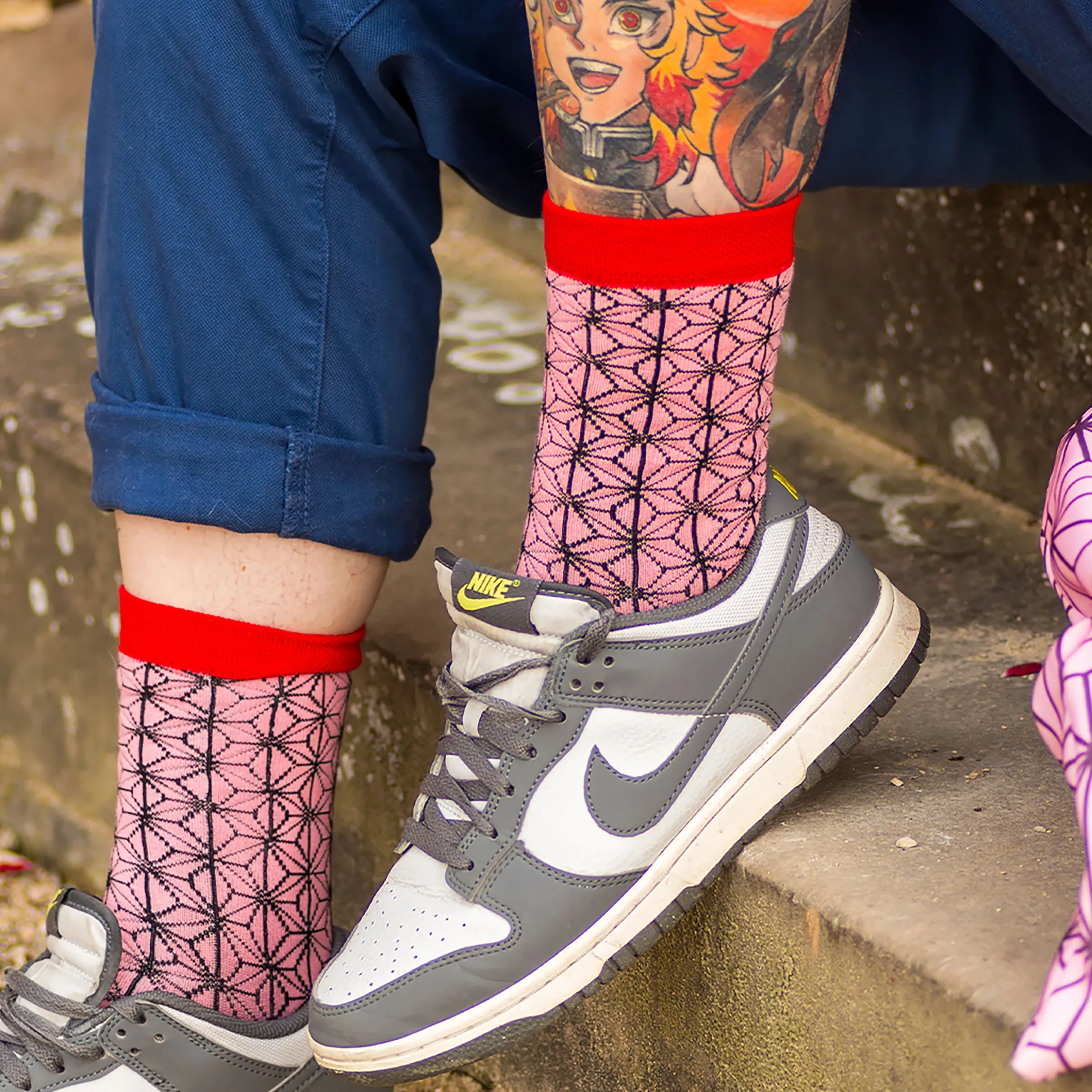 Stap rond als een Demon Slayer-legende met deze officieel gelicenseerde Demon Slayer-sokken met Nezuko Kamado. Comfortabel en stevig met boorden die blijven zitten—ideaal voor bingewatchen, conventies en alledaagse quests. 1 paar, one size (EU 41–44), zo knus als Nezuko’s kist—bamboe-mondstuk niet inbegrepen. Perfect voor anime- en mangafans die houden van een subtiele maar onmiskenbare look.