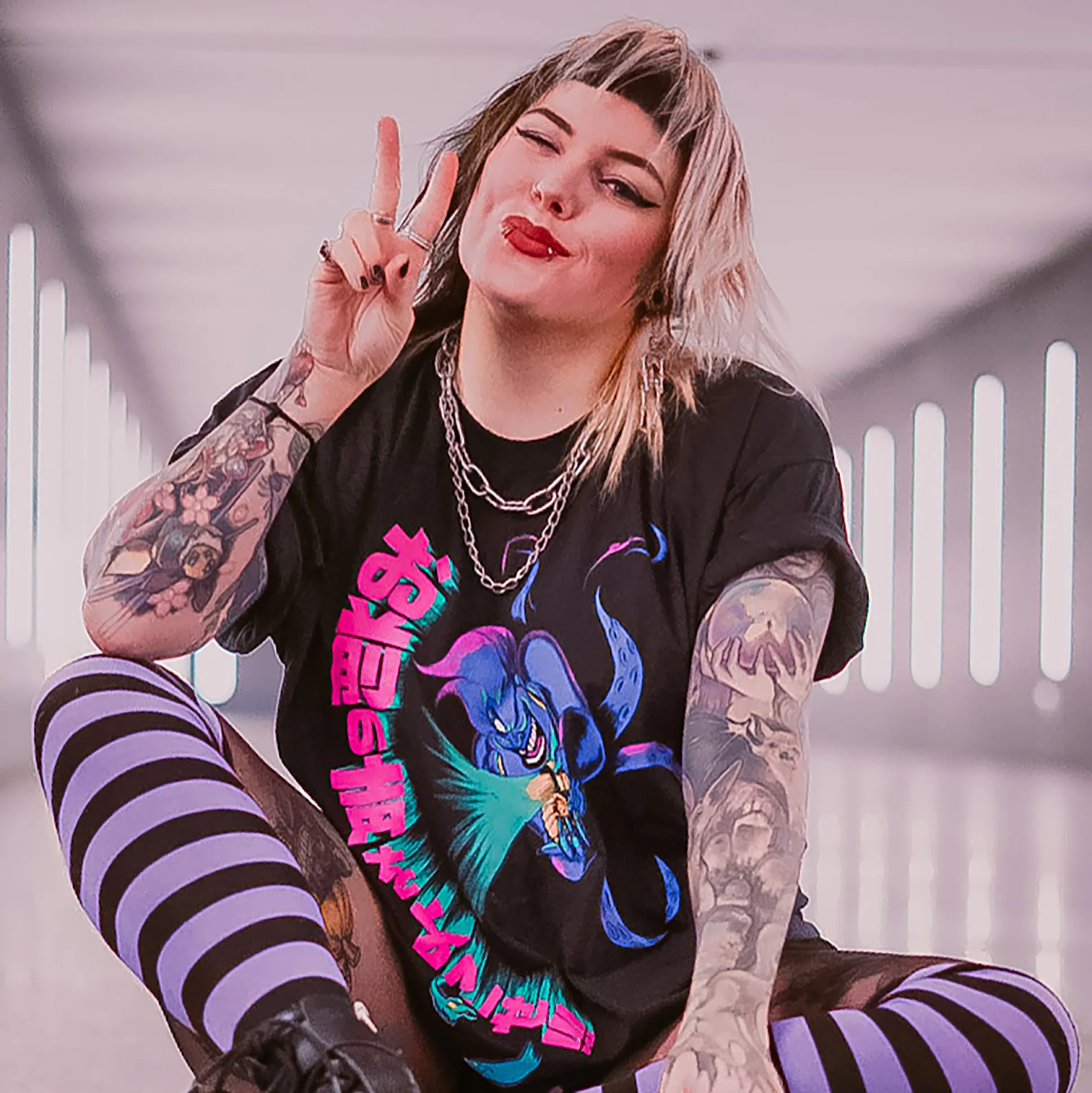 Ursula roept — en jouw kledingkast neemt op. Dit officieel gelicentieerde Disney T-shirt zet de zeeheks uit De Kleine Zeemeermin in het middelpunt met een grote frontprint in Japanse stijl. Zwart, rechte pasvorm en ronde hals: makkelijk te combineren, makkelijk te dragen — perfect voor je villain-era, conventies of gewoon om aan land wat tentakelenergie te verspreiden. Kortom: De Kleine Zeemeermin ontmoet streetwear. Trek ’m aan en laat de zeeheks voor je spreken.