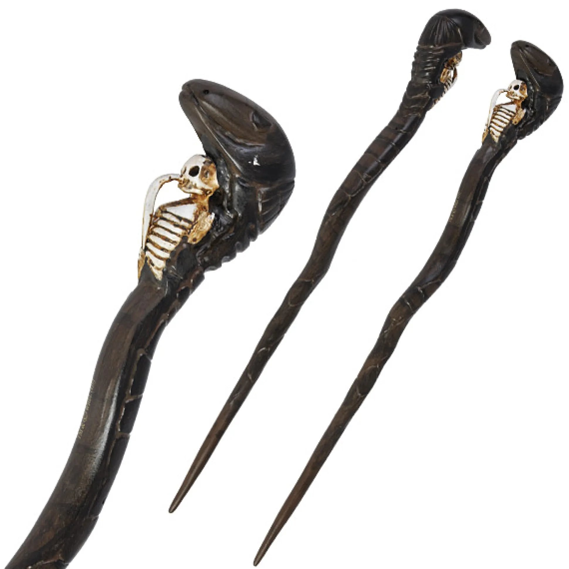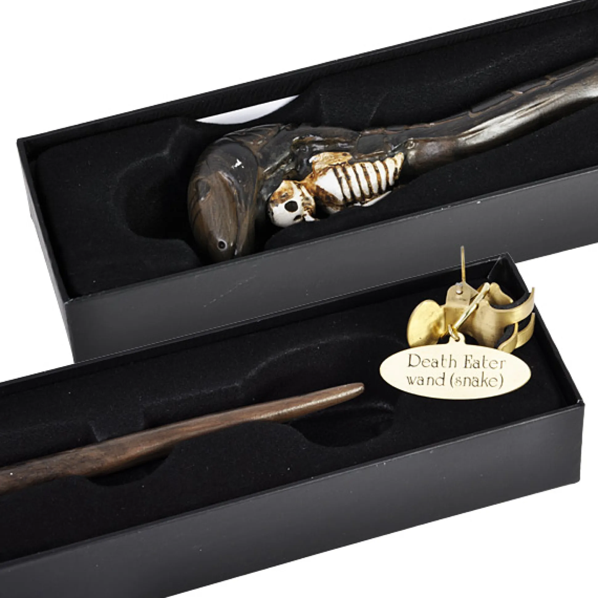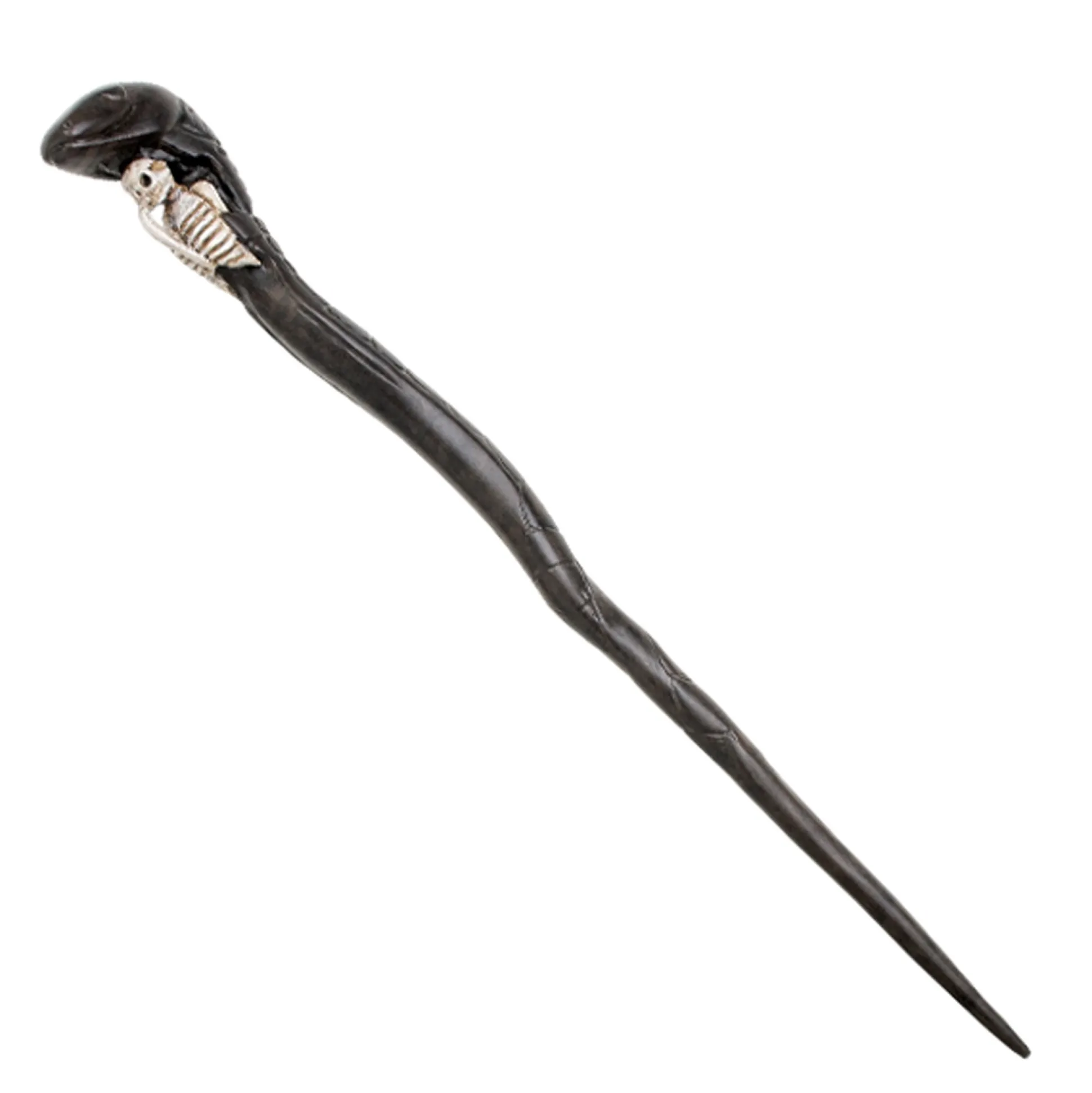 De toverstok is gebogen als een kronkelende slang en is in groen-bruine kleur gehouden. Het moet het symbool van de Dooddoeners voorstellen en herinneren aan Voldemorts slang Nagini. De staf is spiraalvormig met het schubbenpatroon van de slang. Naast de slangenkop is ook een menselijk skelet afgebeeld op het handvat.
