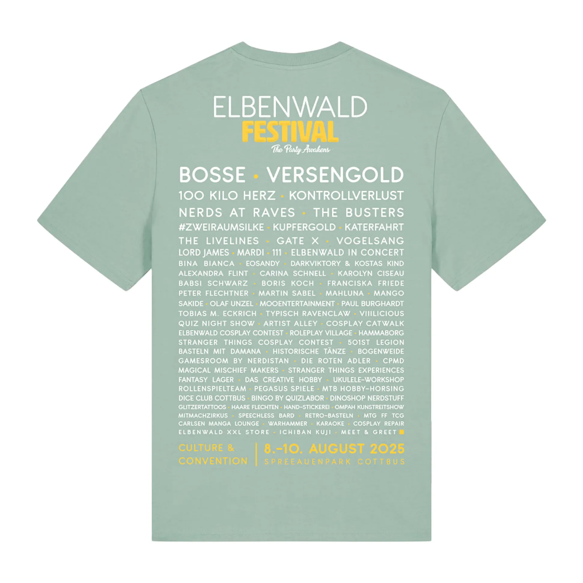 Return of the Party? Zeker weten! Met het officiële Elbenwald Festival T-shirt 2025 laat je van verre zien waar het om draait: grote “Return of the Party” frontprint, complete line-up op de achterkant — perfect voor de ‘Wie is er nu?’-briefing tussen twee acts. Rechte pasvorm met ronde hals, het groen schreeuwt zomer, gras en good vibes. Ideaal voor moshpit, merchstand of maandag op kantoor. Haal de line-up in je kledingkast en wees klaar voor 2025!