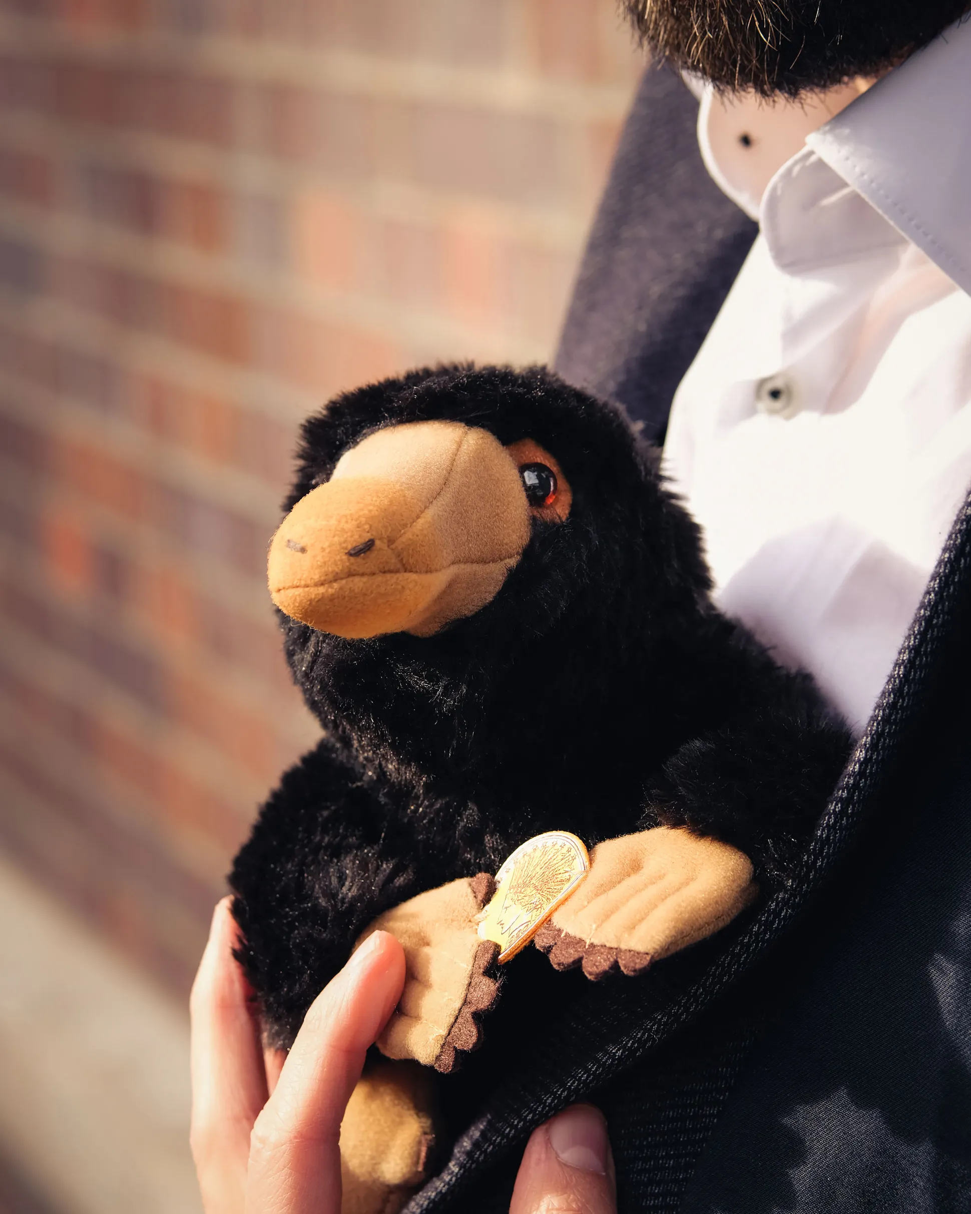 Deze Niffler‑pluche daarentegen is een volkomen onschuldige speelkameraad die dankzij de vastgenaaide schat je kostbaarheden thuis met rust laat en genoegen neemt met knuffels. De perfecte metgezel voor elke fan van de magische wereld rond Newt Scamander en Harry Potter.
