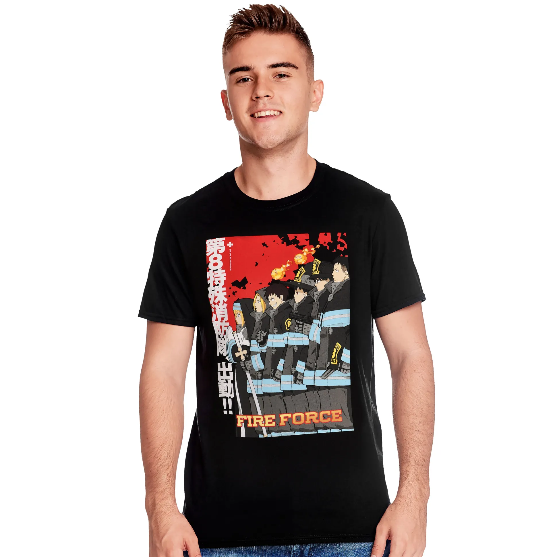 Stijl‑alarm: met dit officieel gelicentieerde Fire Force Poster T‑shirt draag je Compagnie 8 pal op je borst. De grote frontprint toont Iris, kapitein Akitaru Obi en vuurtrap‑legende Shinra Kusakabe in een strakke posterlook — klaar voor actie. Zwart, rechte fit, klassieke ronde hals — comfy van con‑dag tot binge‑avond. Makkelijk te combineren en een instant middel tegen garderobe‑verveling. Breng die Fire Force‑energie naar je dagelijkse leven en laat je stijl spreken nog vóór de bel gaat.