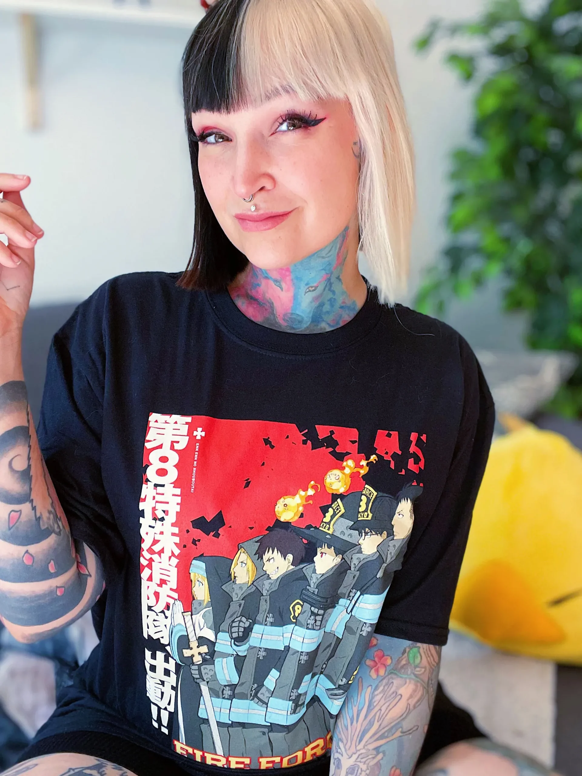 - grote frontprint met onder andere Iris, Akitaru Obi, Shinra Kusakabe