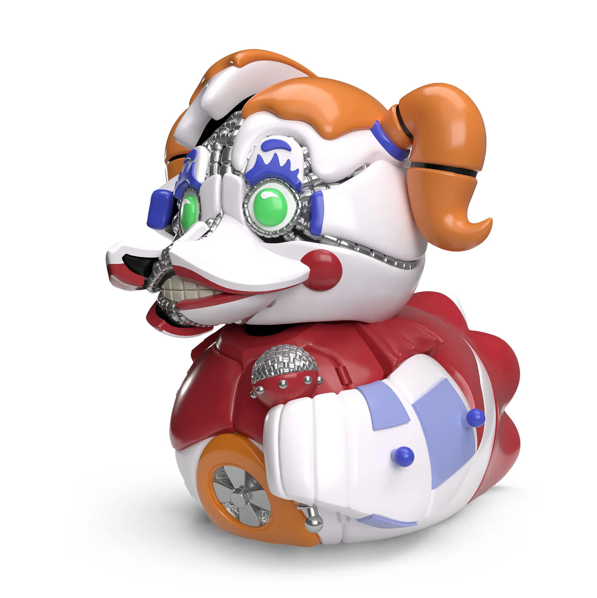 Heb je je ooit afgevraagd hoe het zou zijn als Circus Baby uit Five Nights at Freddy’s herboren zou worden als een piepende badeend? Nee? Wij ook niet, maar hier is ze toch! De officieel gelicentieerde Circus Baby TUBBZ badeend brengt de griezelige charme van de beruchte horror-gameserie rechtstreeks naar je badkamer – en dat zonder jumpscares! Met haar gedetailleerde kenmerken en iconische clown-look is ze een echte blikvanger. Of je haar nu verzamelt, als decoratiestuk gebruikt of als je persoonlijke bad-buddy – deze eend kan alles. En het beste? Ze neemt amper ruimte in beslag, want met haar compacte afmetingen van 7,5 x 10 x 12 cm past ze perfect op de rand van je bad. Dus pak haar en zeg vaarwel tegen saaie badmomenten – Circus Baby wacht op je!
