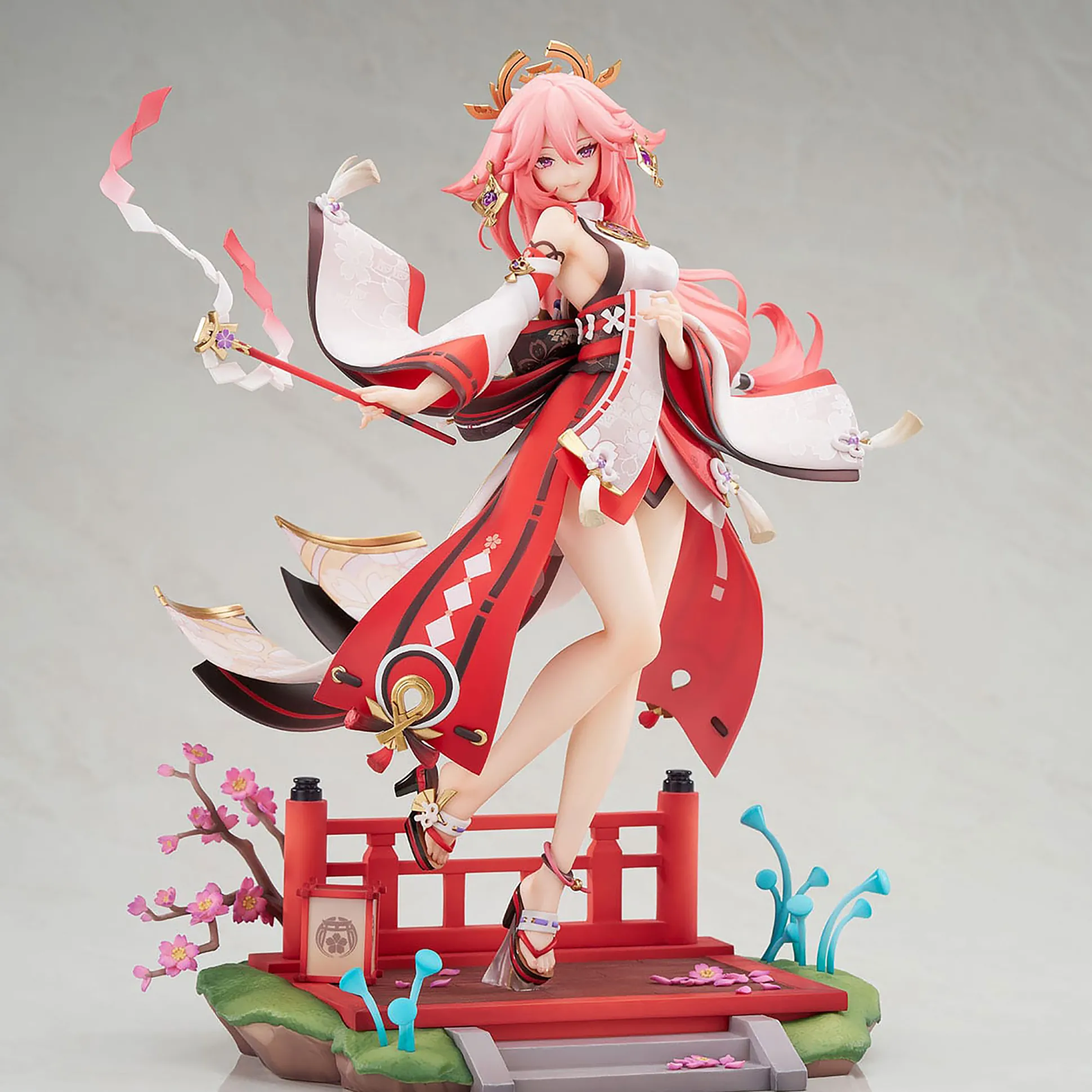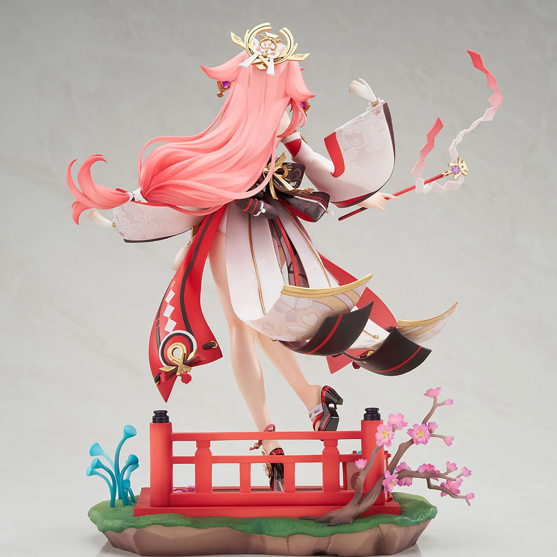 Vossenoren aan, wereld op pauze: Yae Miko trekt in je display! Deze officieel gelicentieerde 1:7 schaalfiguur toont de gevatte Guuji van de Grand Narukami Shrine in de Astute Amusement Version – elegant, ondeugend en klaar om elke vitrine te betoveren. Van de golvende kimono tot de sierlijke charms: alles is strak gemodelleerd en met de hand beschilderd; de hoogwaardige base zet haar perfect in de spotlight. 28 cm pure Electro-esthetiek voor iedereen die Inazuma adoreert en zijn team een kitsune-touch wil geven. Kortom: een must-have voor Genshin Impact-fans – solo showpiece of kroonjuweel van je Miko-collectie.