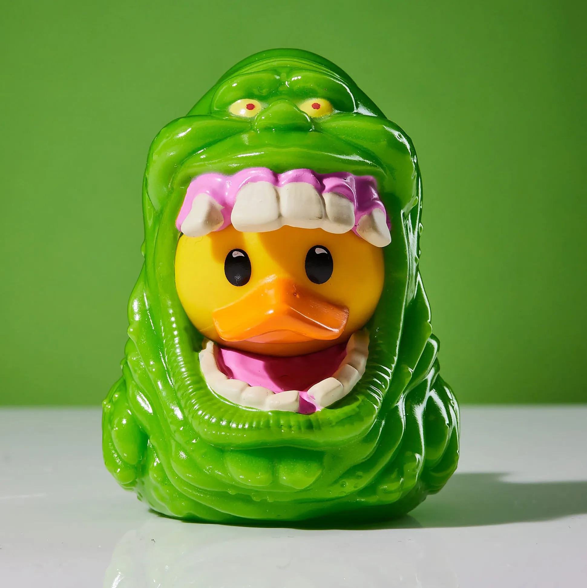 Wie ga je bellen? De eend! Deze officieel gelicentieerde Ghostbusters Mini TUBBZ verandert Slimer Man in een kwakende badbuddy en brengt ecto-groene flair naar je badkamer. Tot in detail uitgewerkt door Numskull Designs en perfect om te verzamelen, stapelen en tentoon te stellen — van de vensterbank tot de doucheplank. Met z’n mini-afmetingen van 4 x 5,5 x 6 cm past hij in elke spookjagers-vitrine (of zeepbakje) en hij komt veilig verpakt in een chique doos met venster. Ideaal als je tijdens het tandenpoetsen gezelschap wilt van een cultspook. Pak Slimer Man en laat ’m je collectie onveilig maken — geen slijm, wel stijl.