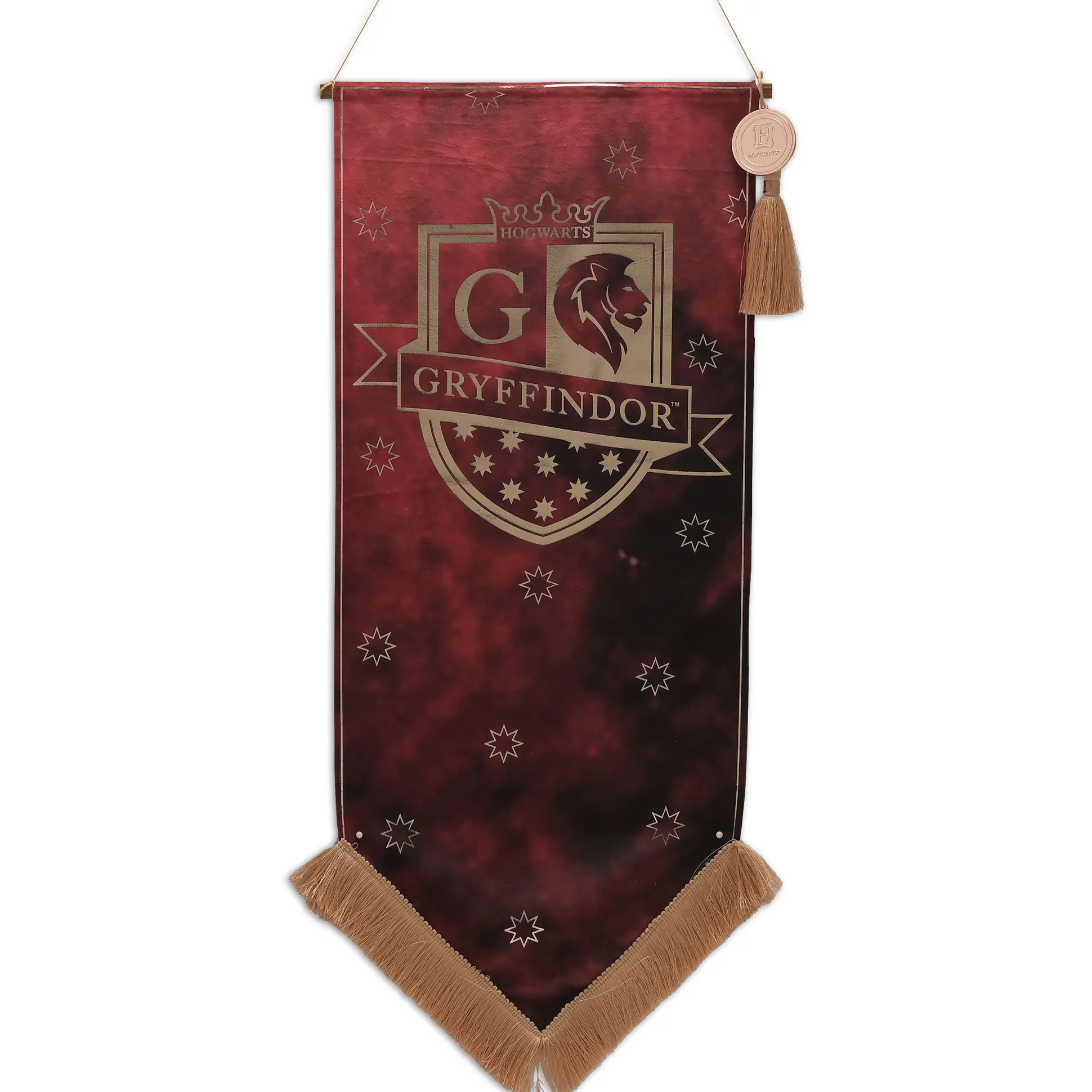 Ben je klaar om je trouw aan Griffoendor te tonen? Dan is deze officieel gelicenseerde Harry Potter-banner precies wat je nodig hebt! Met zijn verhoogde Griffoendor wapenmotief en de fluwelen banner met een goudkleurige band om op te hangen, is het een echte blikvanger. En het beste deel? Het wordt geleverd op een nobele houten paal, inclusief kwasten en een Hogwarts embleem. Met afmetingen van 24 x 58 cm is het het perfecte cadeau voor elke Harry Potter-fan. Hang het in je kamer, laat het trots aan je vrienden zien en voel je elke dag een beetje meer als een echte Hogwarts-student. Met deze banner word je de ultieme Harry Potter-fan!