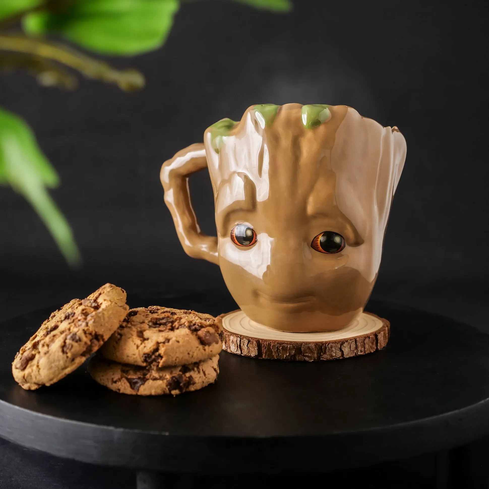 Zin om je dag te starten met een ‘I am Groot’? Deze officieel gelicentieerde Marvel mok van Guardians of the Galaxy heeft een schattig 3D-Groot-design en brengt boom-power zo naar je bureau. 450 ml voor koffie, thee of een scheut Xandariaans blauw water, en met 10 x 11,5 x 13 cm ligt ’ie lekker in de hand. Let op: Groot houdt van de natuur, maar deze mok niet van techniek — alleen met de hand afwassen, niet in de vaatwasser of magnetron.