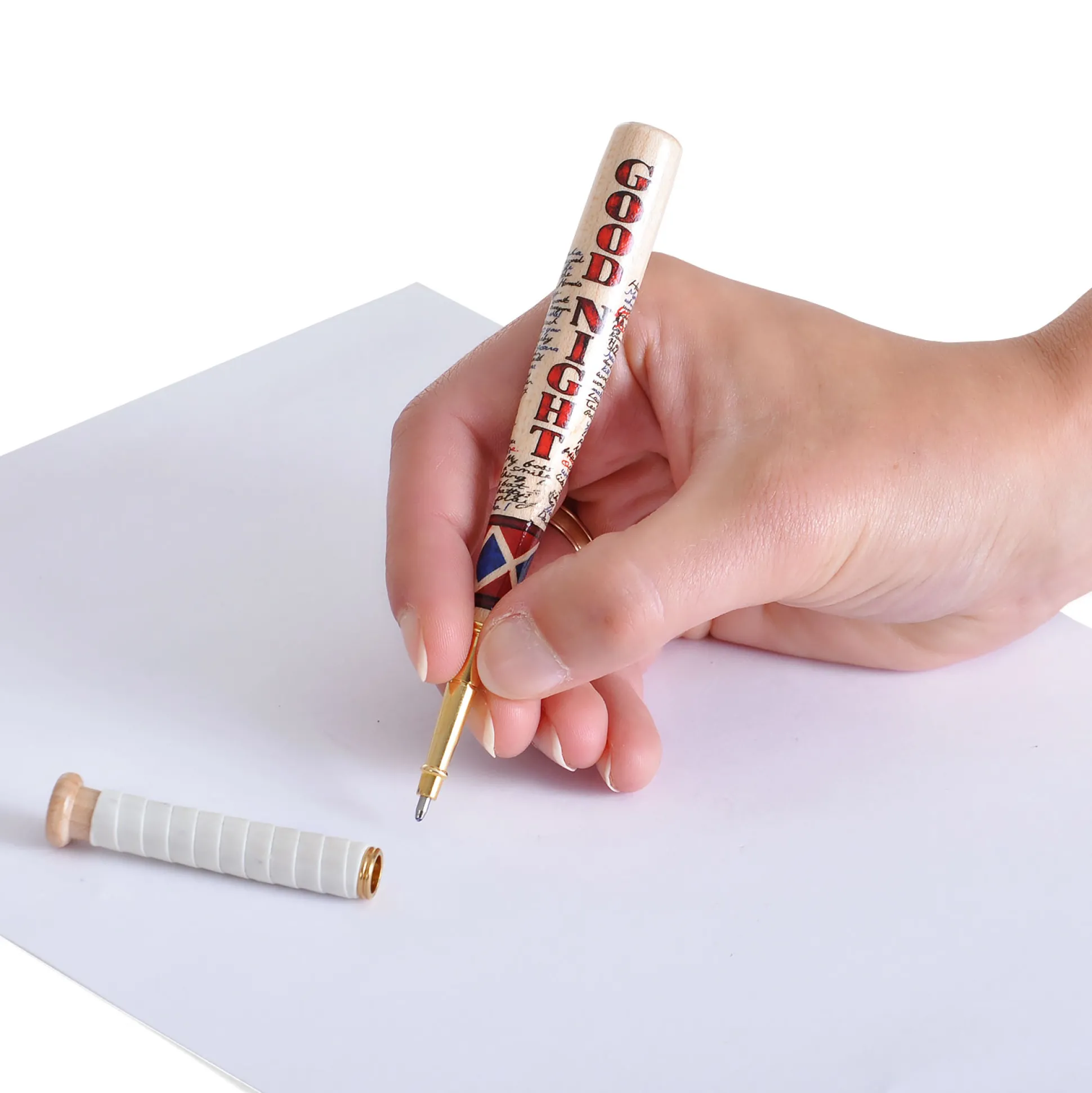 Klaar om wat chaos naar je klas of kantoor te brengen? Met deze officieel gelicentieerde Suicide Squad pen in het design van Harley Quinns befaamde honkbalknuppel geef je je bureau een flinke dosis gekte—zonder protesten van Batman (en zonder iemand te meppen, beloofd). De pen lijkt sprekend op Harley’s knuppel, maar past moeiteloos in elke etui. Helemaal functioneel, met blauwe inkt en 14,8 cm handzaam anarchisme—perfect voor notities, geheime plannen of wat Squad-praat. Schrijft als een tierelier (maar vervalst helaas niet Joker’s handtekening). Kleuren: naturel, wit, rood—zoals een echte Harley-accessoire betaamt.