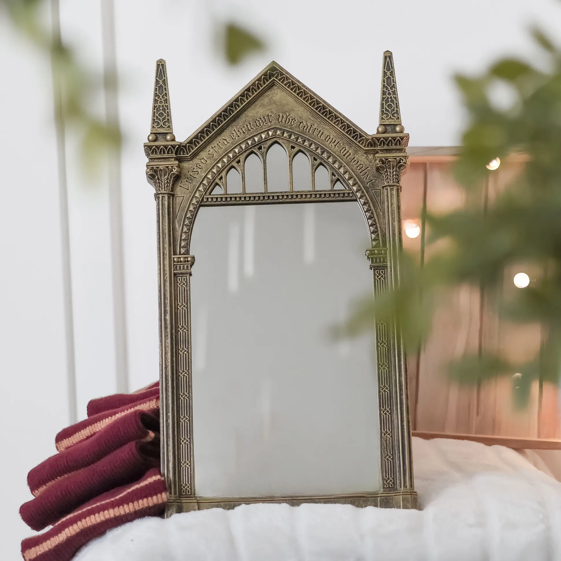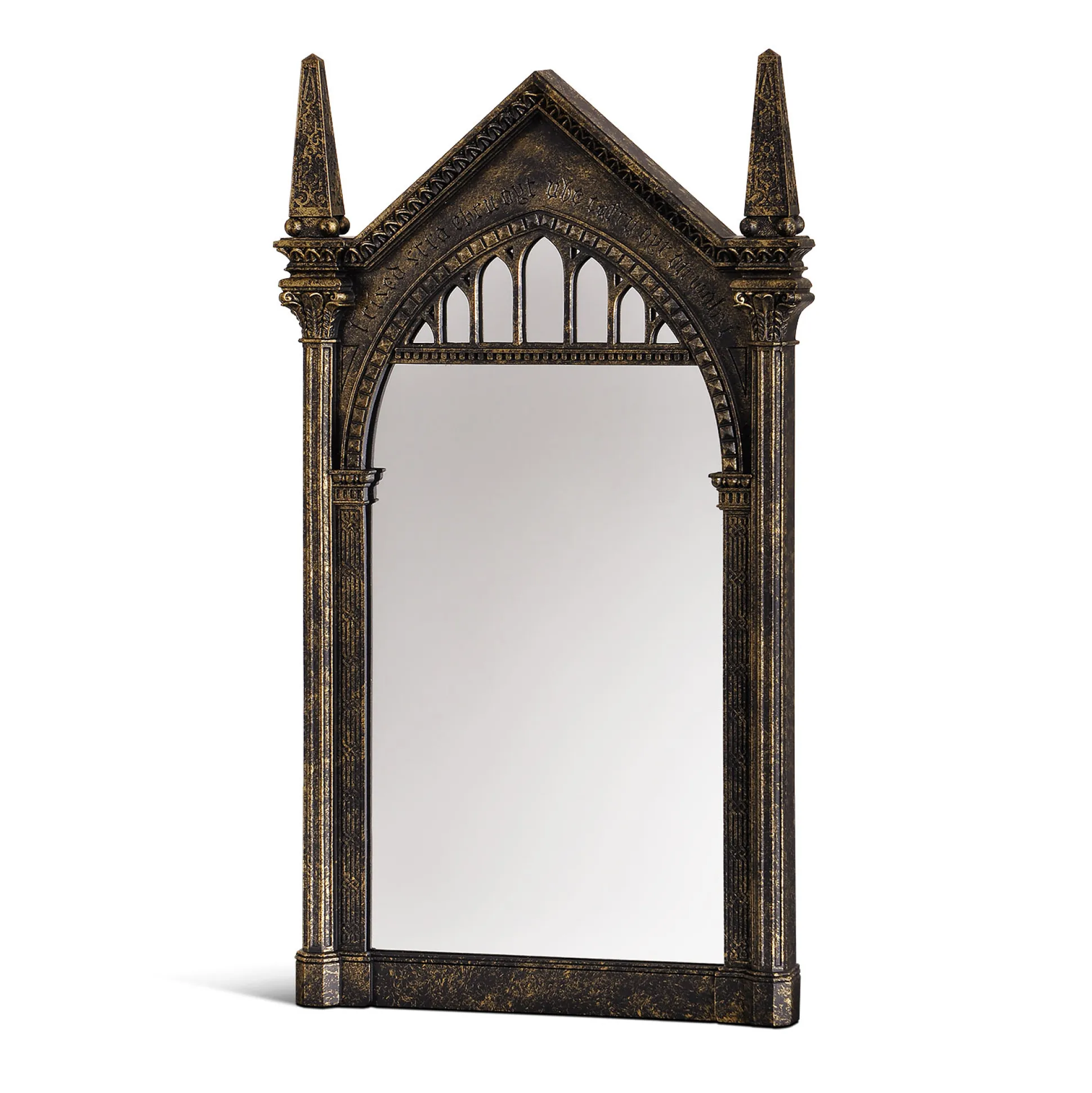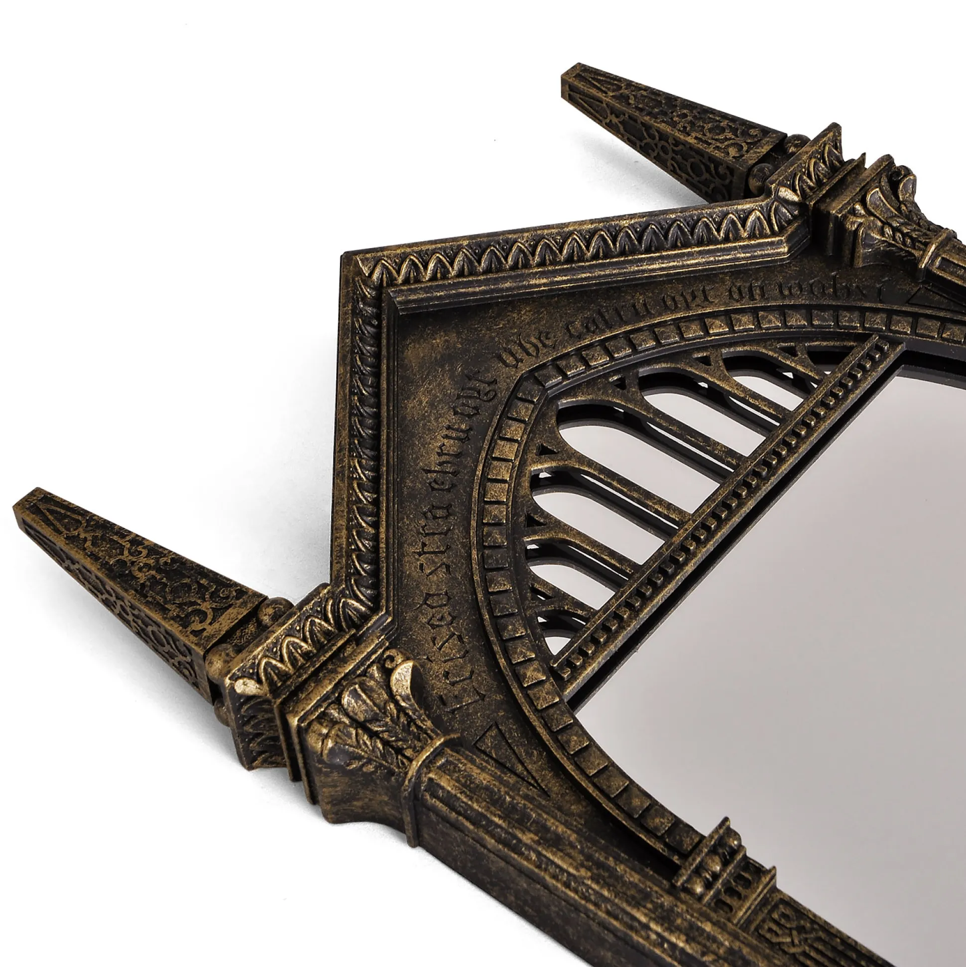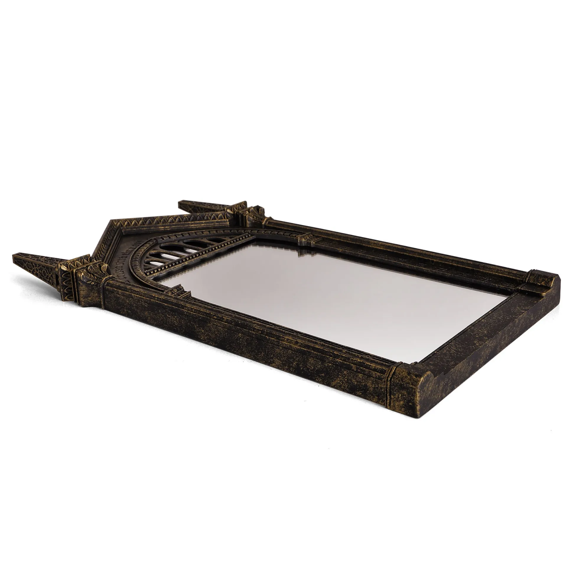 Wanneer je in deze spiegel kijkt, zie je niet je eigen spiegelbeeld – maar je diepste verlangens. Nou ja, bijna. Deze zorgvuldig gedetailleerde replica van de beroemde Spiegel van Neregeb uit de Harry Potter-wereld brengt pure magie in je huis. Het kunstig versierde frame, de mysterieuze inscriptie en het authentieke ontwerp maken het tot een van de meest iconische fanartikelen ooit. Stel je nu eens voor: je komt thuis, de spiegel hangt daar – en elke keer voel je je een beetje alsof je in Zweinstein bent.