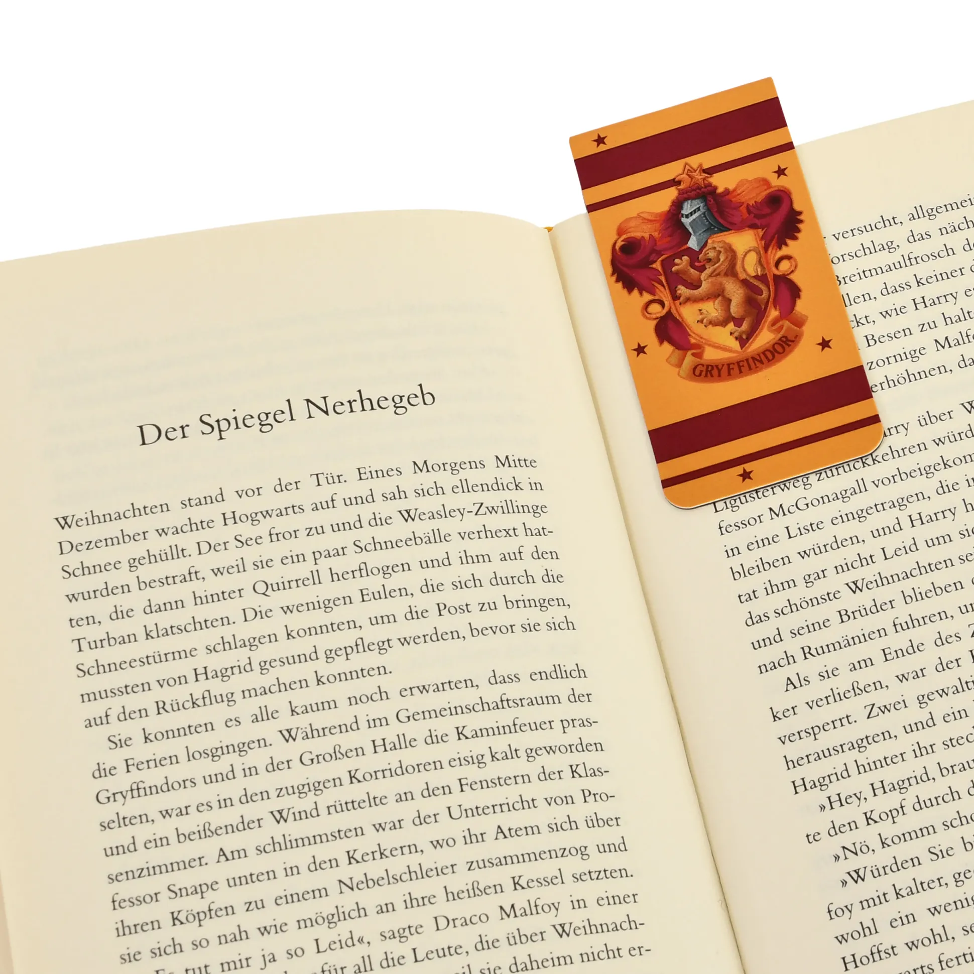 Team Griffoendor? Geef je boek het bijpassende huiswapen. Deze officieel gelicentieerde Harry Potter magnetische bladwijzer klikt met een magnetische klem om je pagina – stevige grip, geen ezelsoren, geen Zweinstein-tovenarij nodig. Het wapen van Griffoendor schittert in geel en rood en tovert elke Dreuzel-roman om tot een handboek van Zweinstein. Met 4,5 x 9 cm past hij in pockets, notitieboekjes en alles daartussen. Perfect als kleinigheid voor leeuwen die dapper genoeg zijn voor “nog één hoofdstuk”.