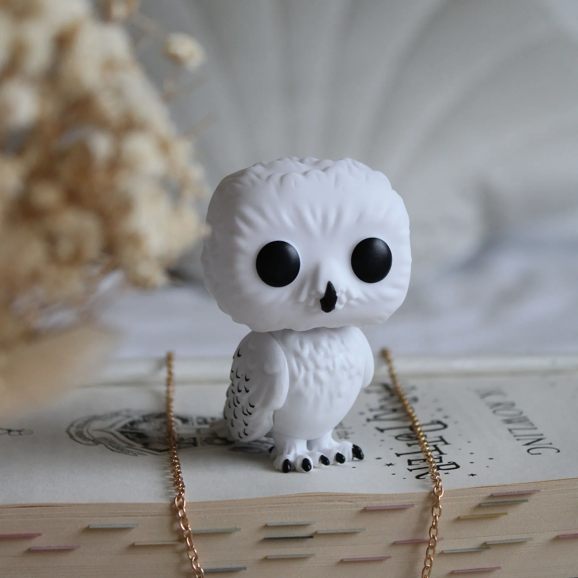 De 7,5 cm hoge replica van de Sneeuwuil Hedwig uit Harry Potter is gemaakt van plastic, heeft een beweegbaar hoofd en is verder ‘uit één stuk’. Het wordt geleverd in een ontworpen vensterdoos en kan dus direct worden weggegeven.