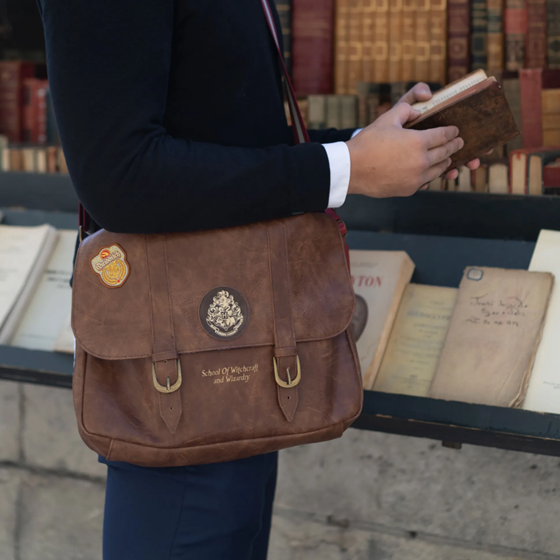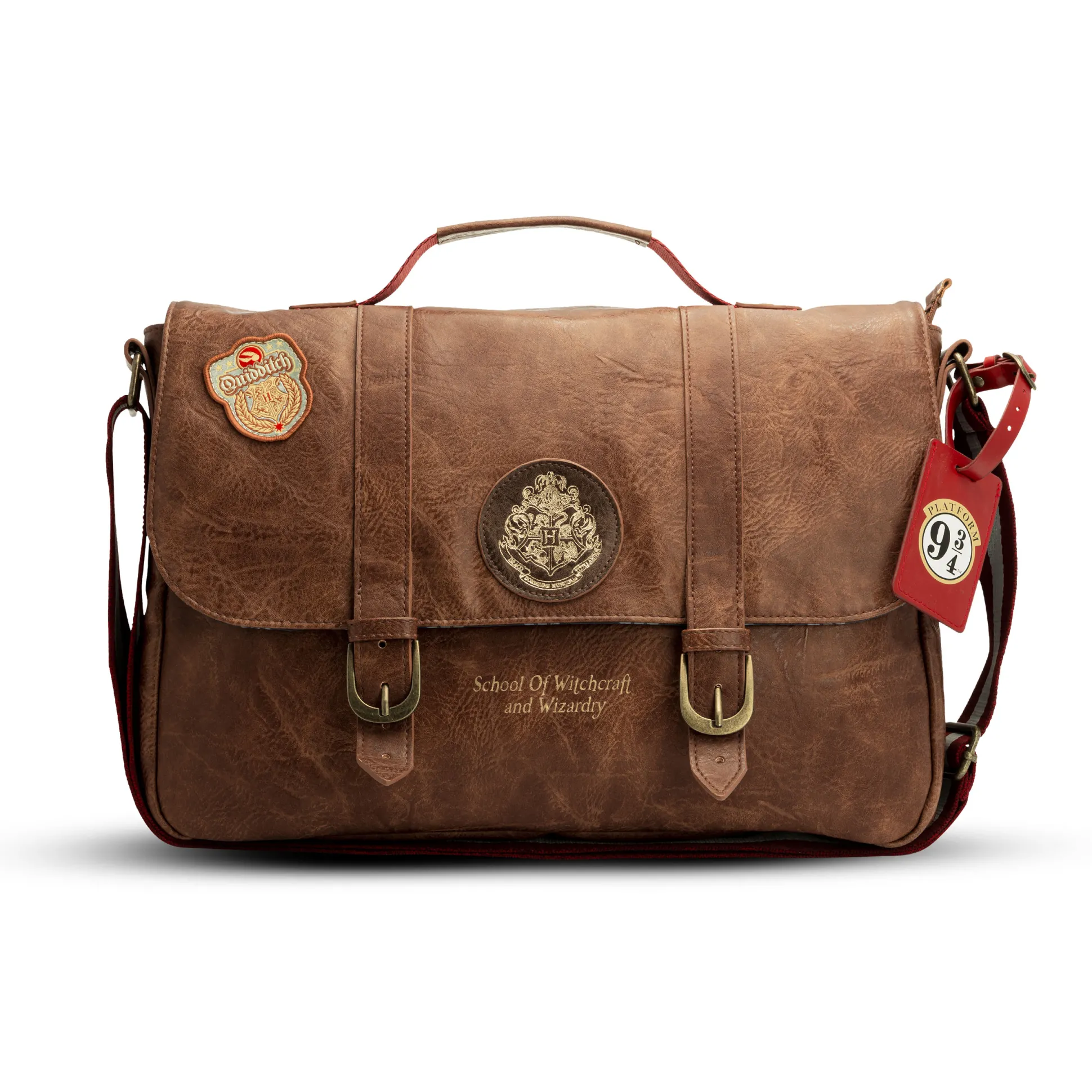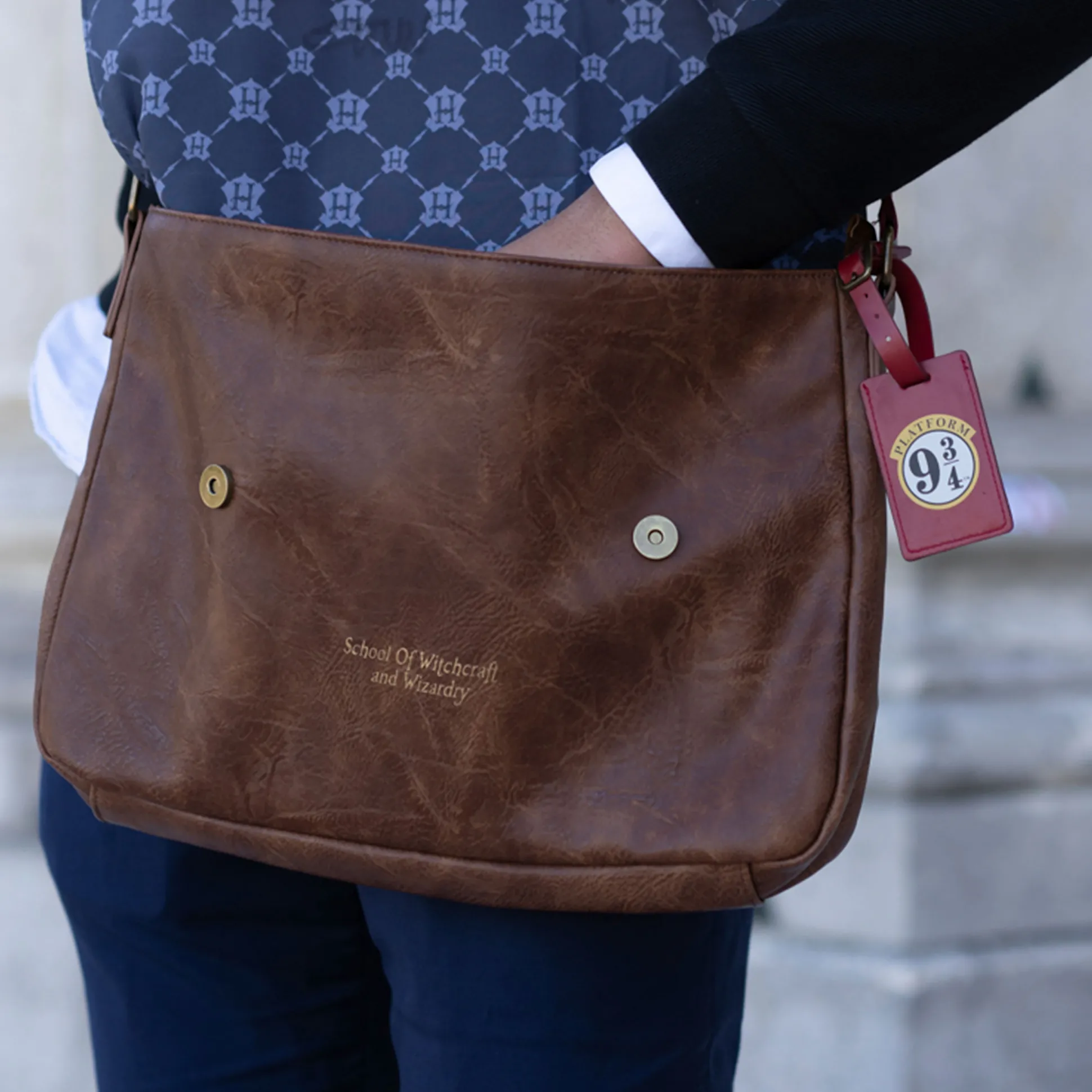 Afgestudeerd aan Zweinstein (al is het maar in je hart)? Dan is de Hogwarts Alumni schoudertas jouw daily pass tot de tovenaarswereld. Klassiek bruin, met patches van Zweinstein en Zwerkbal en de tekst “School of Witchcraft and Wizardry” — alsof ’ie zo uit de Grote Zaal is gelopen.