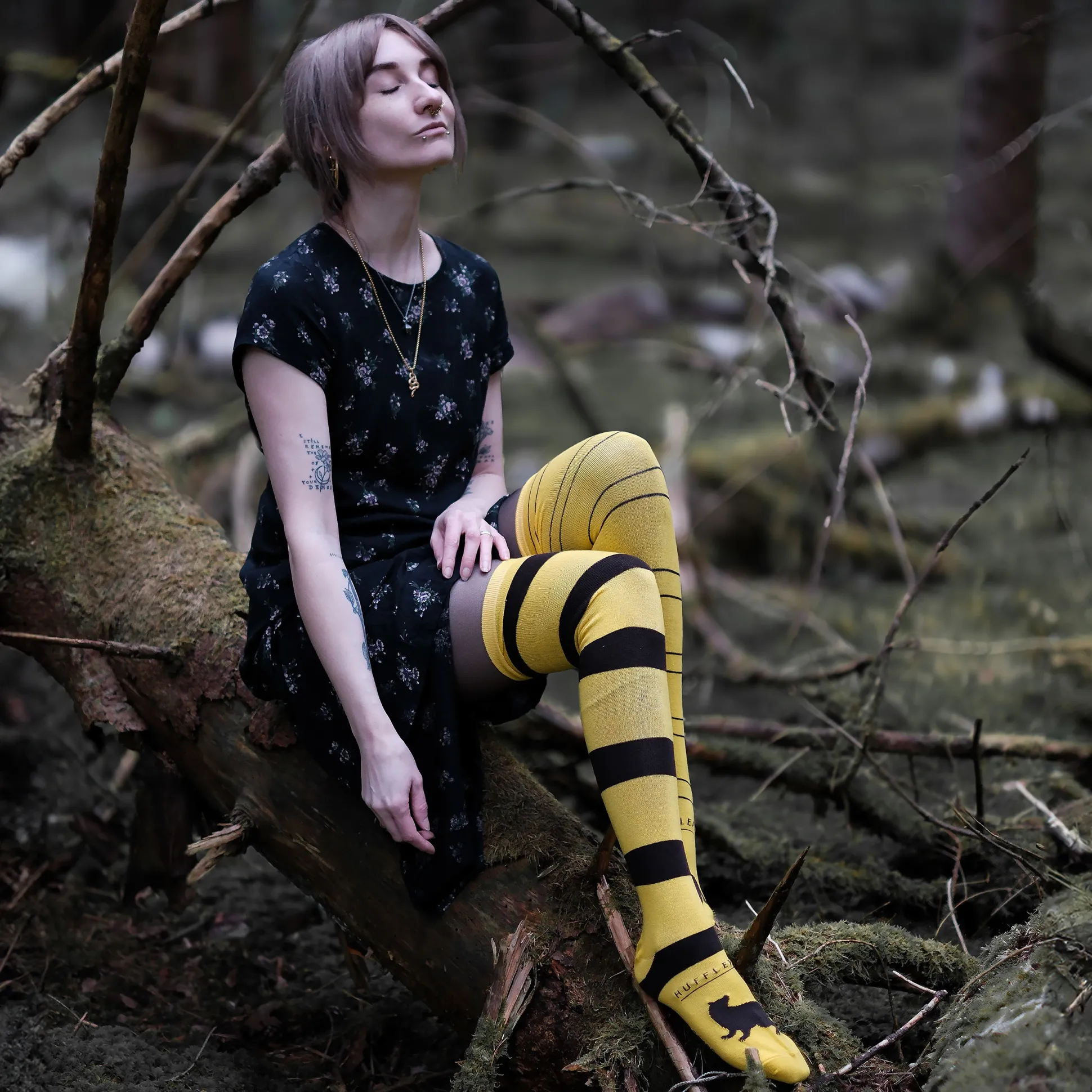 Team Huffelpuf? Pak deze officieel gelicentieerde Harry Potter 2-pack overknee-sokken en draag je das-trots tot boven de knie. Het ene paar heeft de Huffelpuf-opdruk, het andere de das – allebei in de huiskleuren geel en zwart.