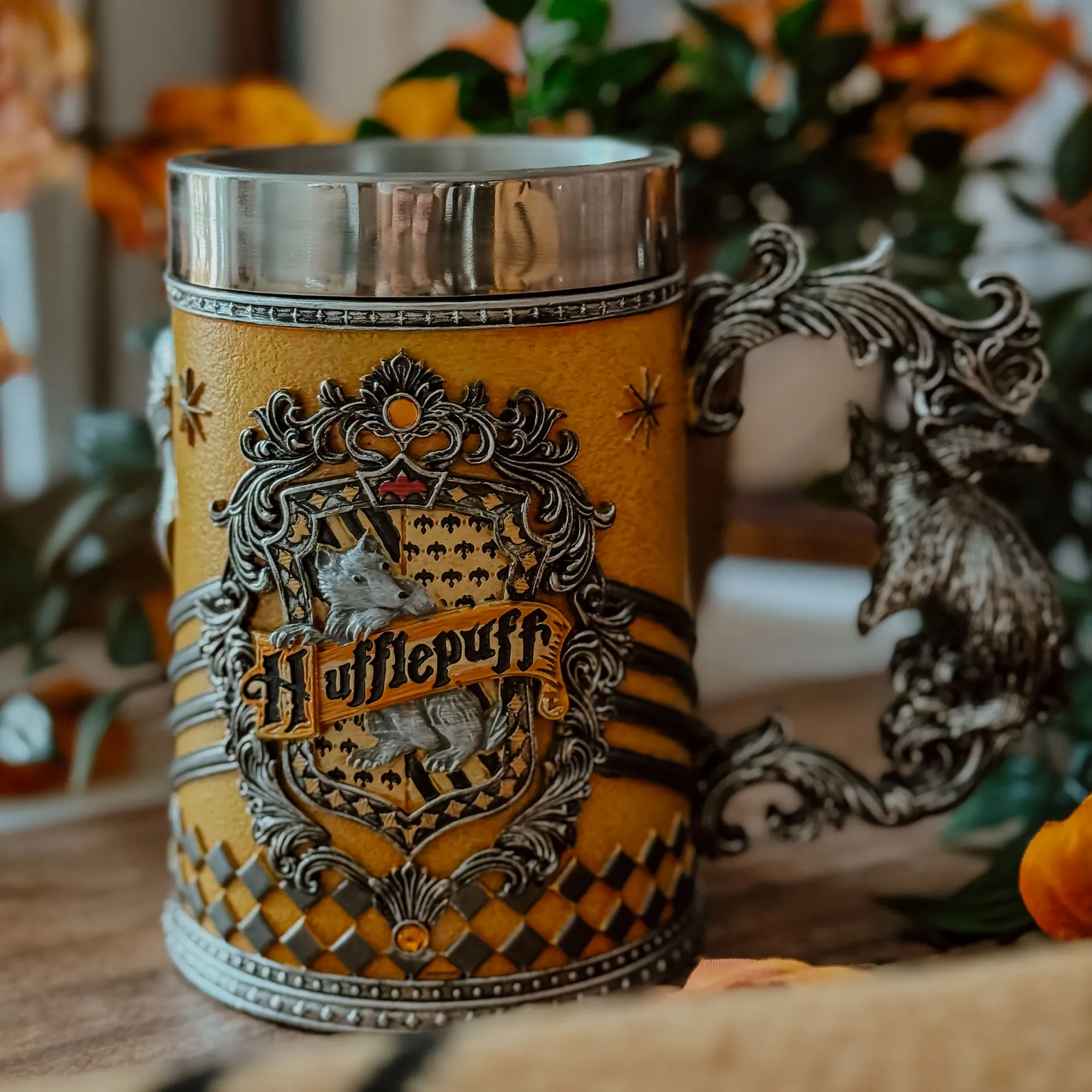 - in Hufflepuff design met logo en das als wapen