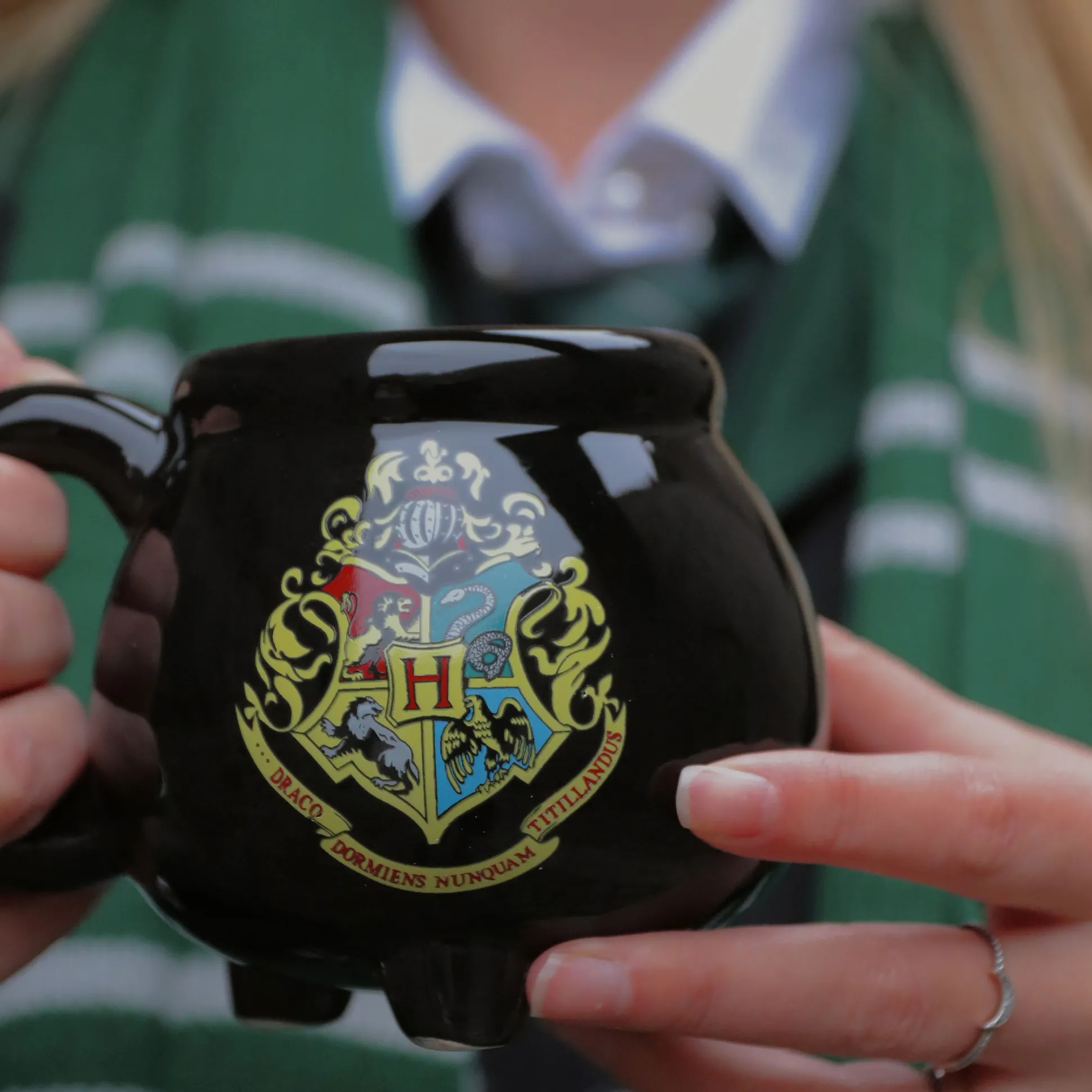 Brouw je ochtenddrankje als een echte heks of tovenaar: deze officieel gelicentieerde Harry Potter Ketel 3D Mok met het wapenschild van Zweinstein heeft een royale inhoud van 475 ml. Vervaardigd als een échte ketel staat hij prachtig op je bureau, in de kast of in de leerlingenkamer — ideaal voor koffie, thee of een schuimige Boterbier (we verklappen het niet aan Sneep).