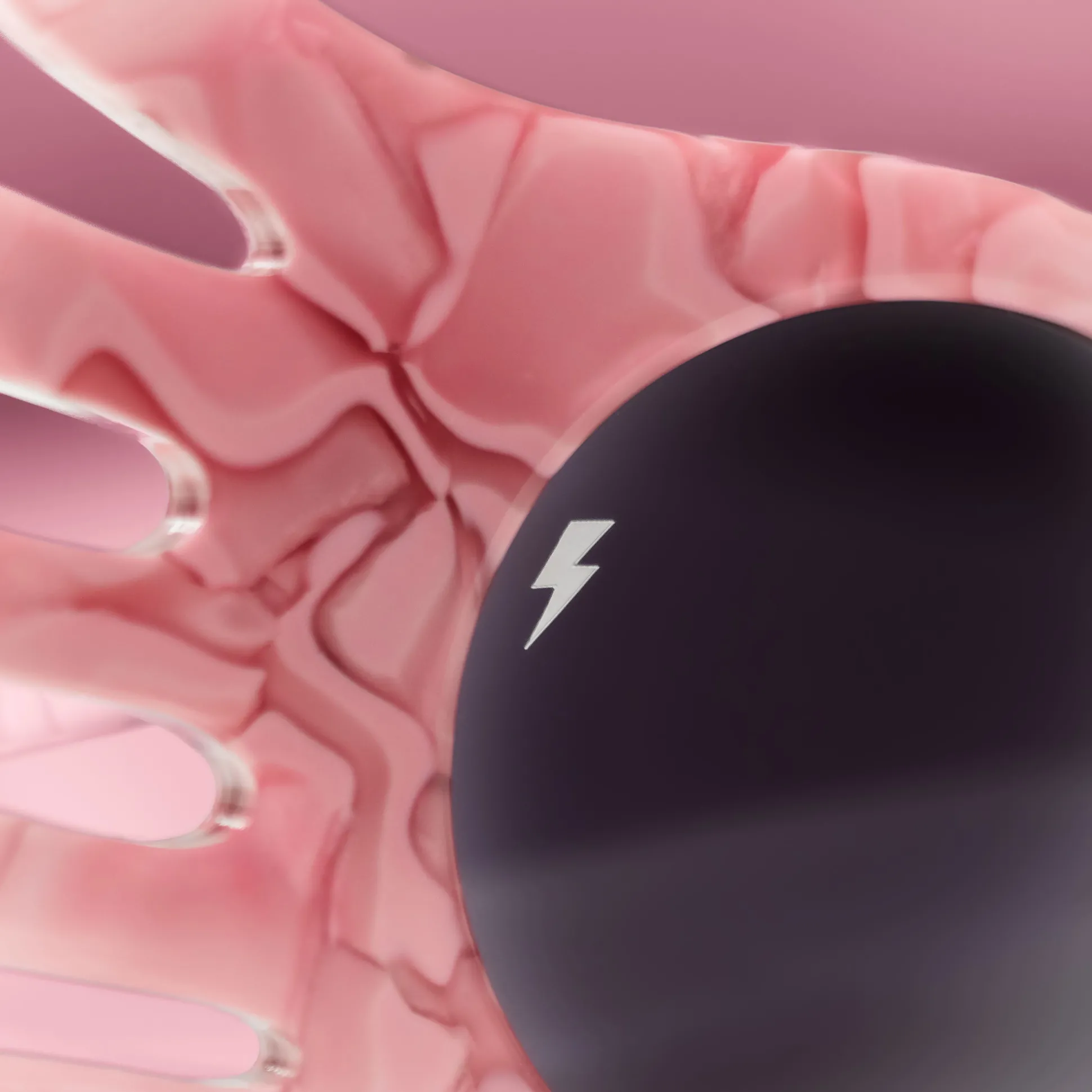 - kleine bliksemschicht op de lens, logo en bliksemschicht aan het einde van de arm