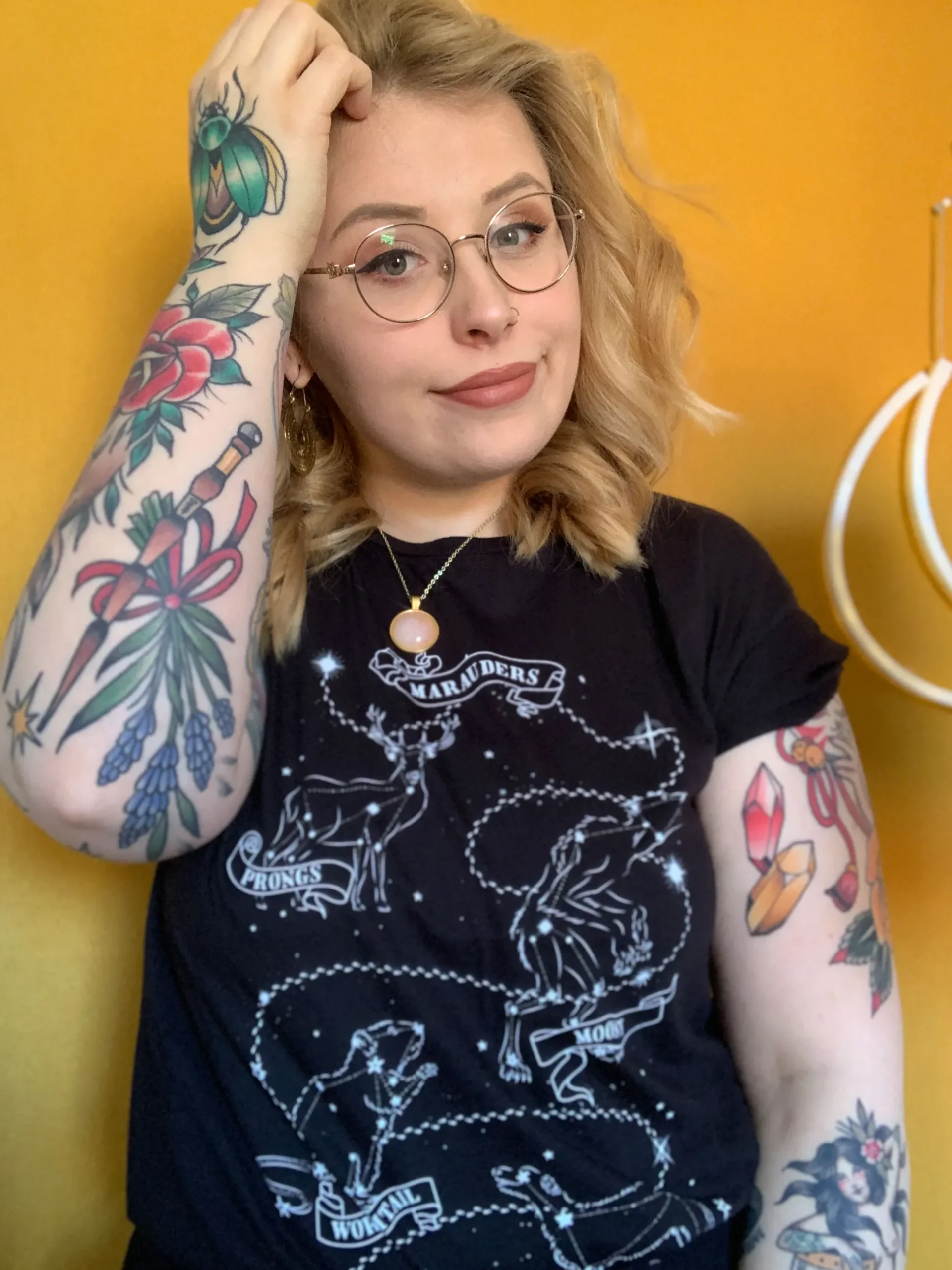 Zwart als de nacht (of het haar van Sirius Zwarts) en minstens zo mysterieus: Met het Harry Potter – Marauders Astrology T-shirt haal je sterrenkunde én magische streken in huis. De grote print op de voorkant toont de sterrenbeelden van de legendarische Sluipelaars – misschien spot je wel je eigen Patronus! Officieel gelicenseerd, recht model en met klassieke ronde hals zorgt dit shirt voor betoverende looks. Perfect voor wie na zonsondergang zegt: ‘Ik zweer dat ik een ster ben’. Een must-have voor elke Potterhead met gevoel voor galactische stijl!