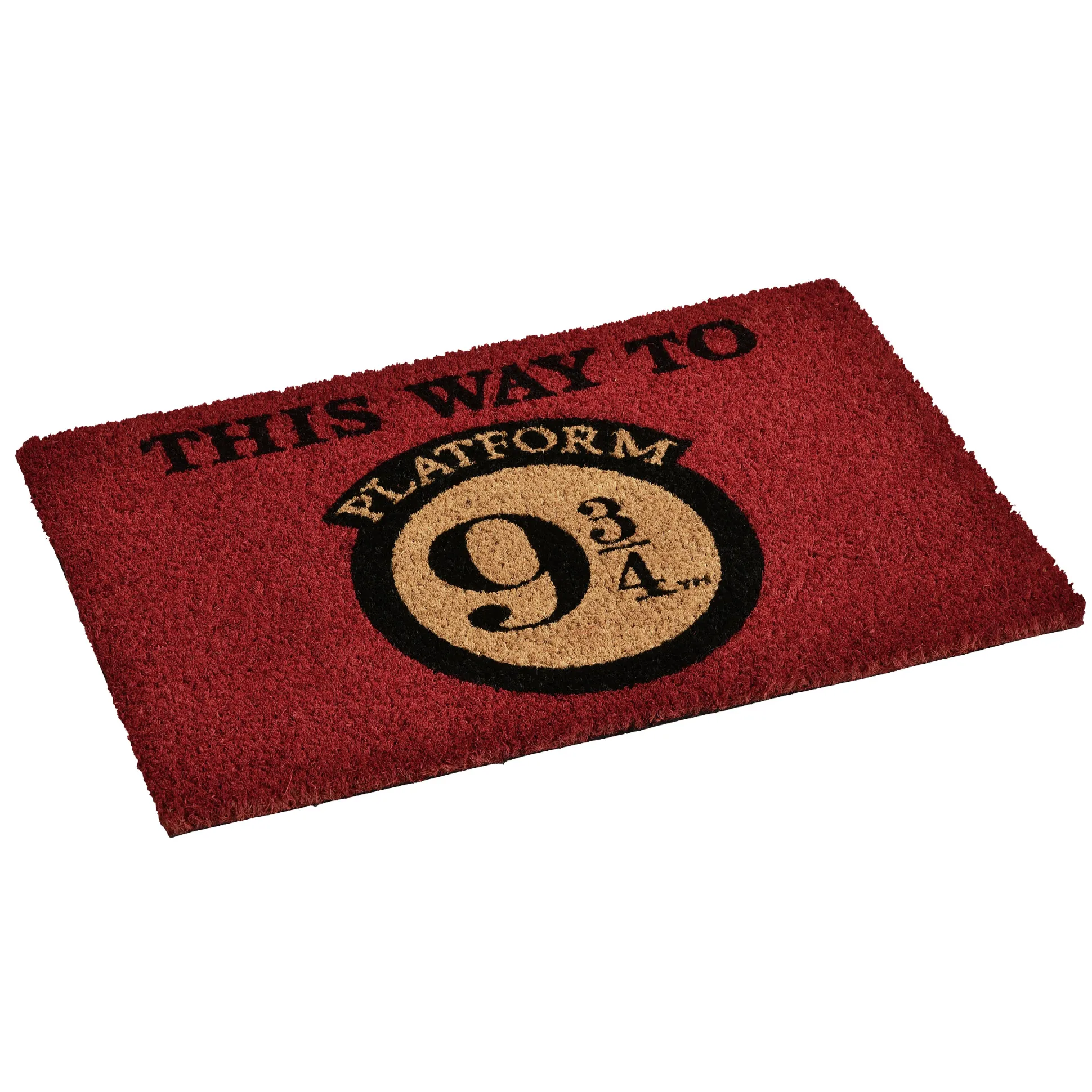 Wacht je nog steeds op je brief van Zweinstein? Begin dan bij de voordeur. Deze officieel gelicentieerde Harry Potter deurmat wijst met de This way to Platform 9 3/4 print en het logo de weg naar Perron 9¾. Geen sprint tegen een bakstenen muur nodig: de onderzijde is kunststof gecoat en antislip, de mat is licht- en waterbestendig en klaar voor het dagelijkse Dreuzel-weer. Met 61 x 41 x 2 cm past hij bij entrees, in hallen en studentenkamers en houdt hij modder, post en zo nu en dan een uil tegen. Open de deur naar magie en laat je gasten weten dat ze op het juiste perron staan.