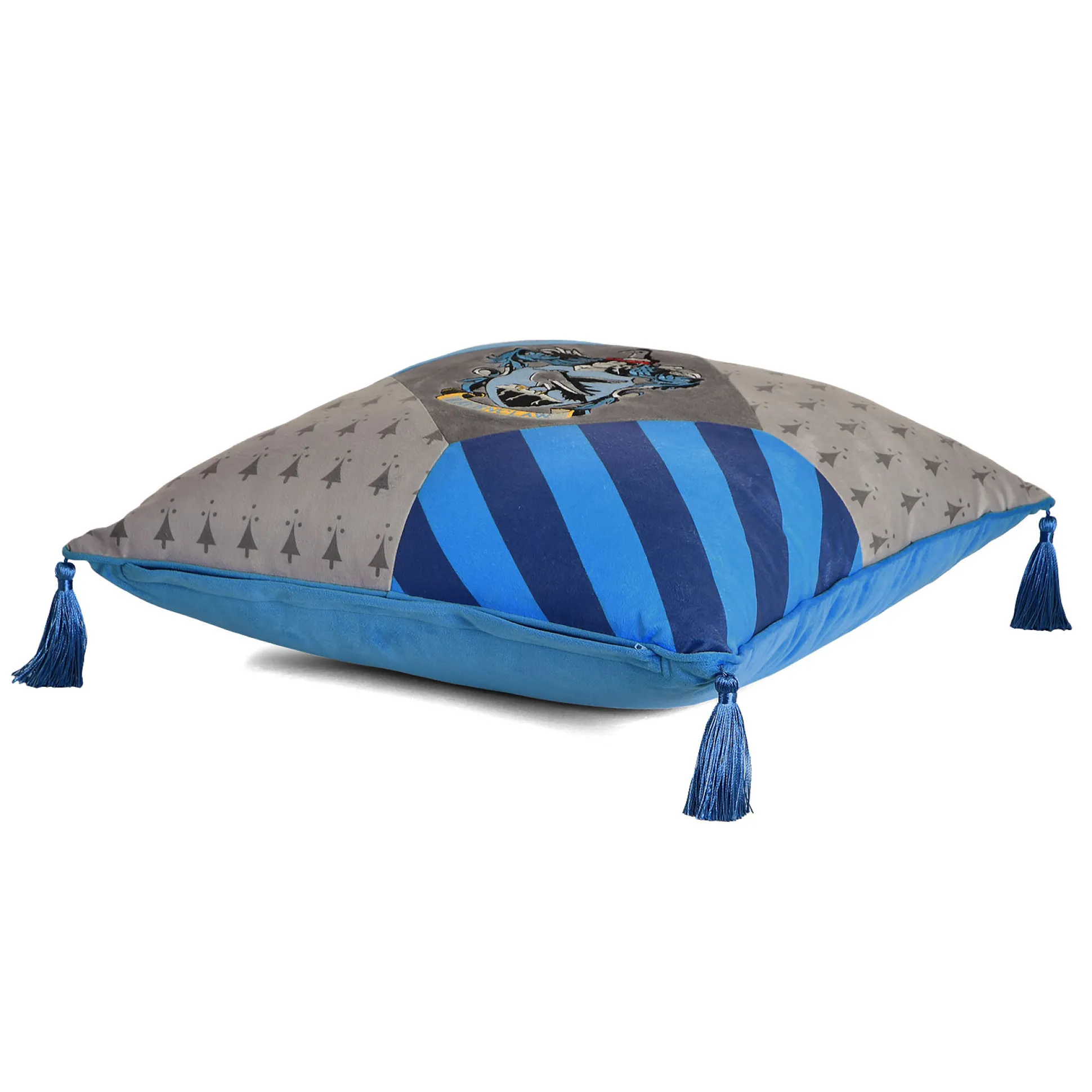 Voor iedereen die liever Huispunten scoort met brains dan op het Zwerkbalveld: jouw Ravenklauw-troon voor op de bank. Officieel gelicentieerd Harry Potter-kussen in Ravenklauw-design met geborduurd wapen. Kwastjes op de hoeken? Natuurlijk — extra style points. De hoes is afneembaar (voor het geval een Boterbier uit de bocht vliegt). 48 x 48 cm, in blauw en grijs. Perfect voor je leeshoek, studiesessie of powernap tussen twee spreuken. Deluxe? Zeker weten.