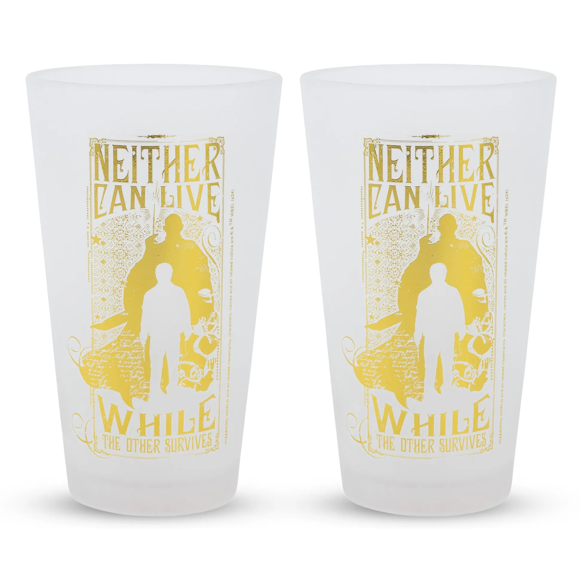 - set bevat 2 matte glazen met Relieken van de Dood motief