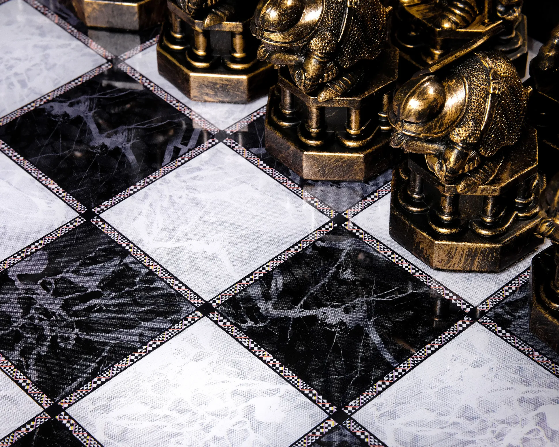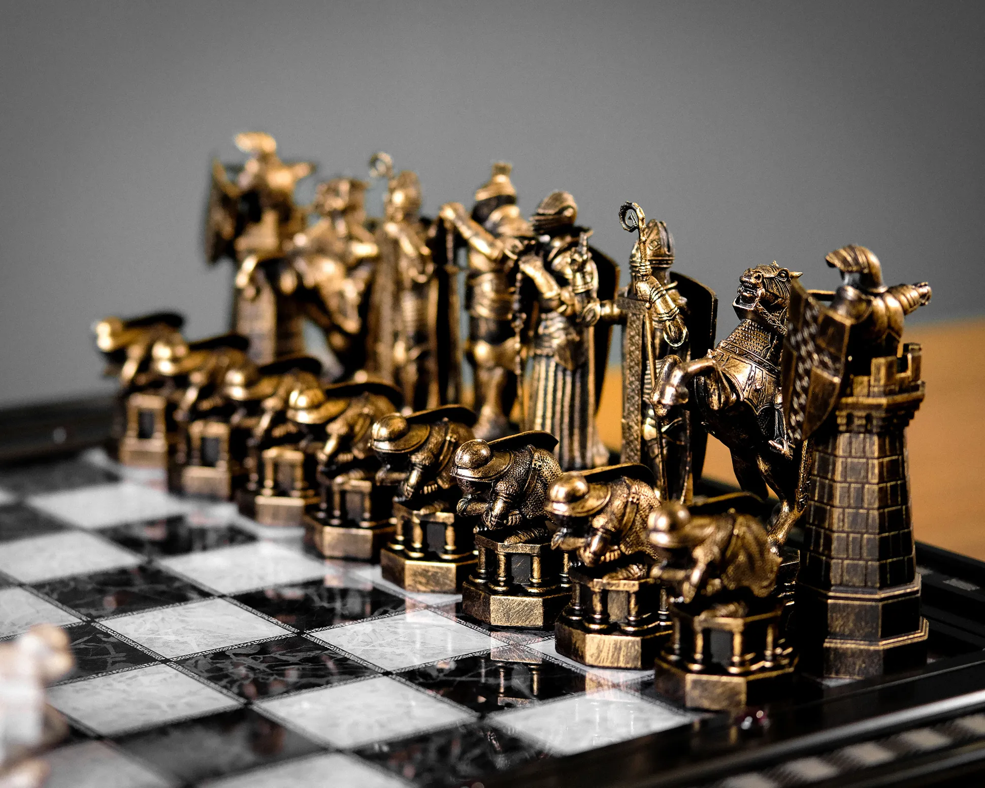 - compleet met 32 schaakstukken en indrukwekkende speeltafel