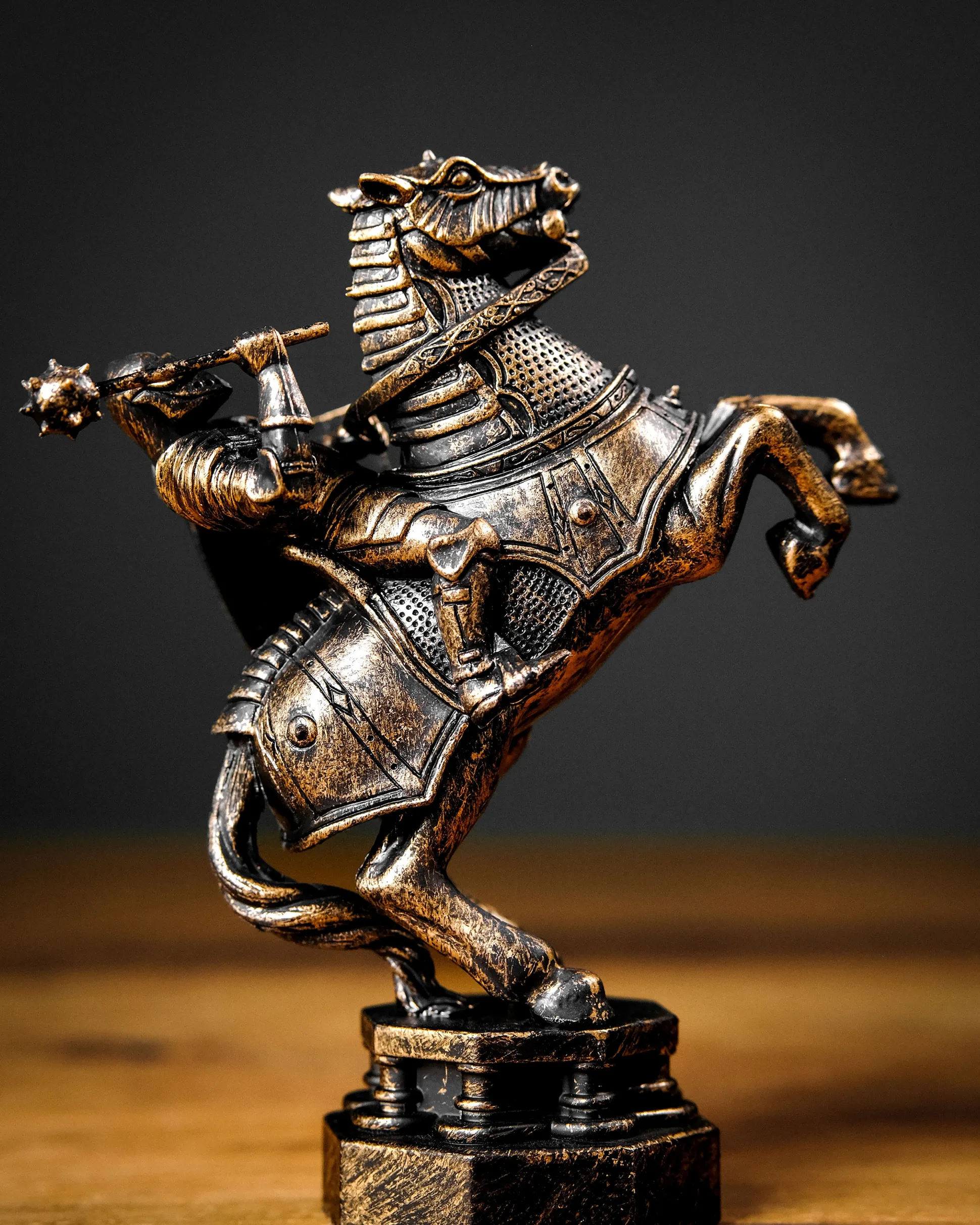 Het wordt geleverd in gigantische afmetingen en bevat alles wat nodig is voor een magisch schaakspel: 32 schaakstukken (6-14 cm hoog) en een bijbehorend schaakbord (50 x 50 cm). De figuren van polystone liggen zwaar in de hand en hebben een edele koperkleurige afwerking. Ze zijn opgeborgen in een aantrekkelijke doos met het Harry Potter logo en wegen in totaal 4 kg.