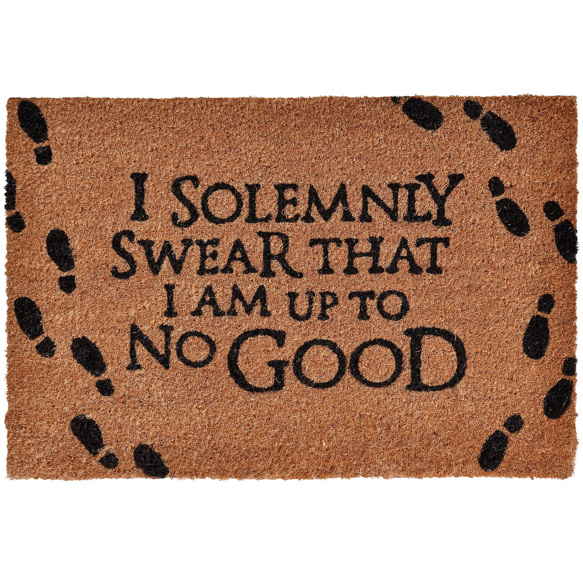 Geen Dreuzel, geen saaie boel? Rol dan de rode loper uit – of nou ja, de beige-magische mat – voor de echte onruststokers! Deze officieel gelicentieerde Harry Potter deurmat met het iconische „I solemnly swear that I am up to no good.” citaat, verwelkomt je in ware Zweinstein-stijl. Praktisch én stijlvol: antislip onderzijde, bestand tegen licht en water, houdt modderige toverlaarzen tegen (helaas geen toezicht op Driekwart Nutsboon-snoepjes in de gang). Afmetingen: 60 x 40 cm. De perfecte binnenkomer voor iedereen die wel van een beetje kattenkwaad houdt.