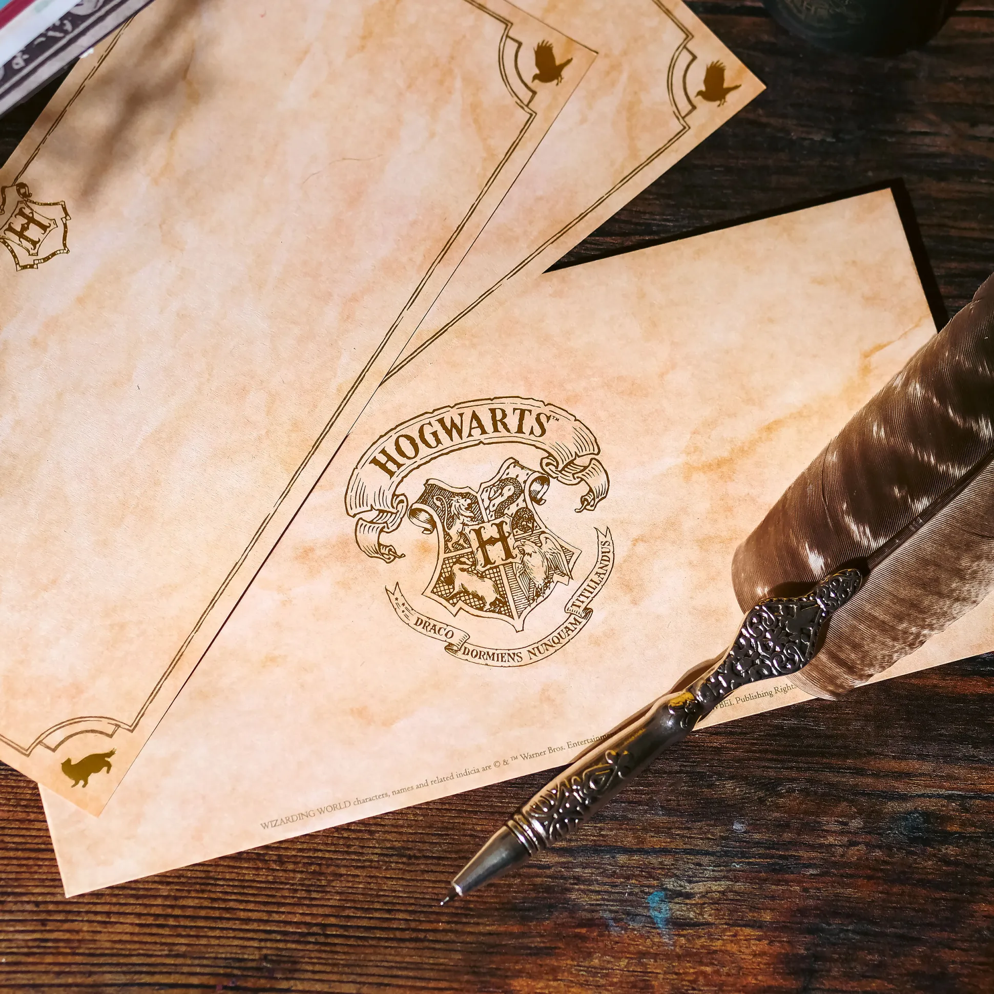 - inclusief 10-delige briefpapier set en 10 enveloppen, met Hogwarts-wapen en huisdieren