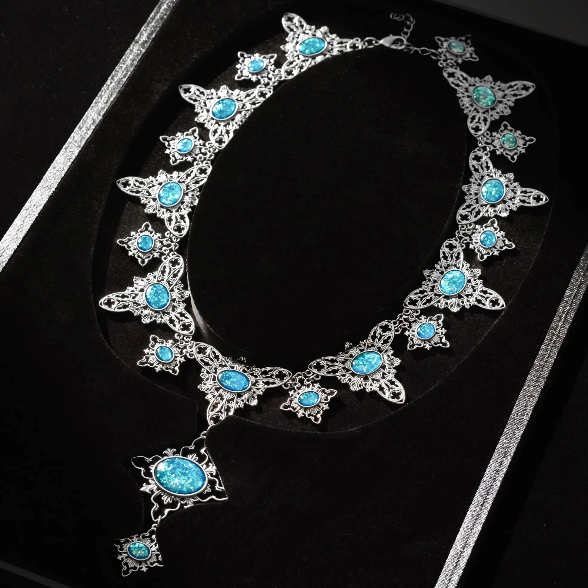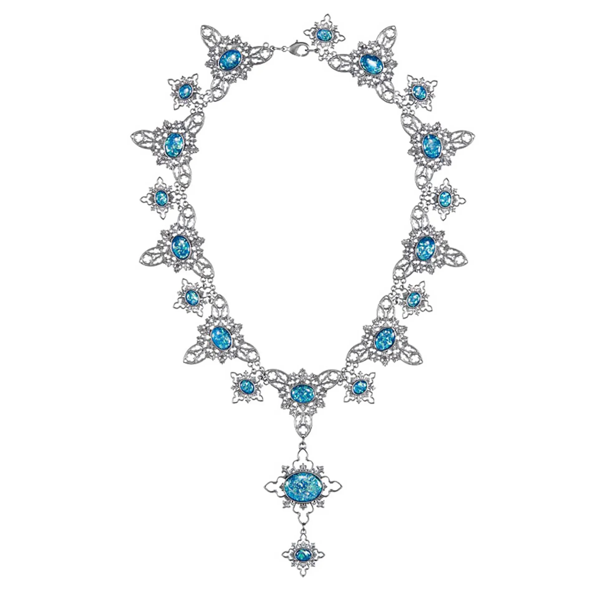 Sommige sieraden zijn gewoon mooi. En dan heb je de vervloekte opalen ketting uit “Harry Potter and the Half-Blood Prince”. Met deze officieel gelicentieerde filmrepliek haal je precies dat beruchte, duistere sieraad in huis – gelukkig zonder een verplicht verblijf in Sint-Mungo daarna. De ketting is filmgetrouw nagemaakt en versierd met 20 glinsterende, iriserend blauwe stenen die van kleur lijken te veranderen afhankelijk van het licht en direct de aandacht trekken van elke heks, tovenaar of Dooddoener. De ketting heeft een totale lengte van 38 cm en is voorzien van een verstelbare sluiting, zodat hij comfortabel rond je hals of over je gewaad past, of je nu door de Wegisweg struint of achter een Dreuzelbureau zit. Hij wordt geleverd in een hoogwaardige geschenkdoos met stevige metalen zwaaisluitingen, die eruitziet alsof hij zo uit de achterkamer van Zweinsteins favoriete duistere winkel Borgin and Burkes komt. Perfect om cadeau te doen, te verzamelen of je Harry Potter-verzameling een vleugje vervloekte elegantie te geven – gebruik op eigen magisch risico.