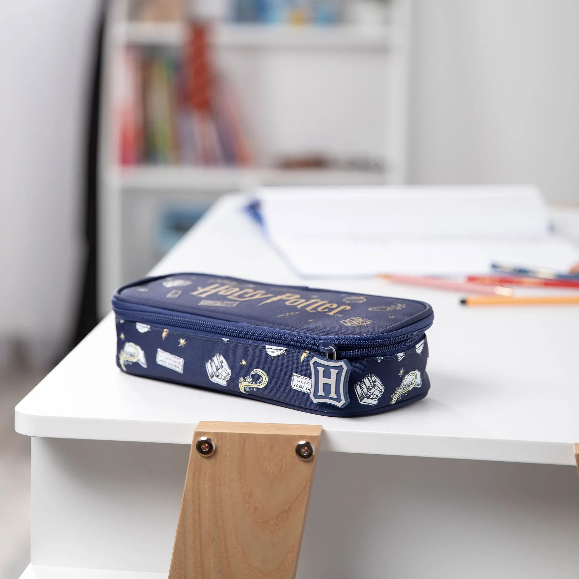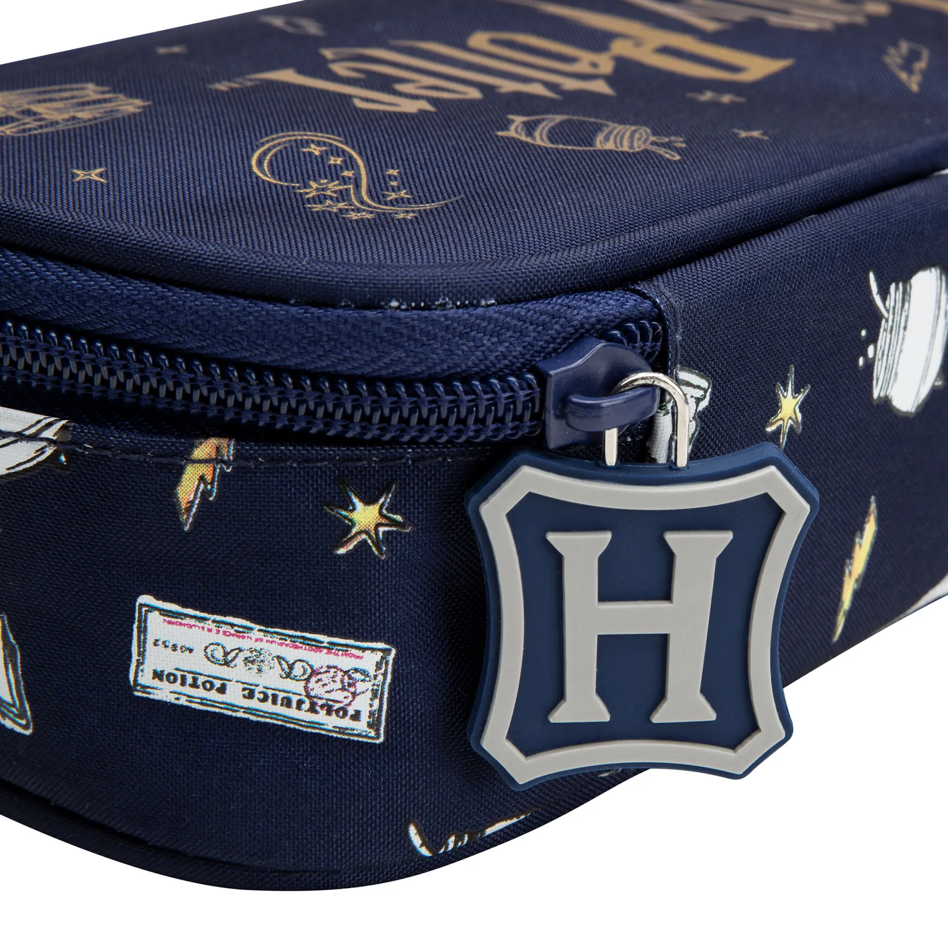 Klaar voor jouw volgende magische avontuur? Met de officieel gelicentieerde Harry Potter – Hogwarts Etui ben je perfect uitgerust om elke toverstaf (of pen) binnen handbereik te houden! Deze betoverende etui, met het iconische Hogwarts-ontwerp en symbolen zoals bliksemschichten, boeken, ketels en toverdranken, is een must-have voor elke Potterhead!