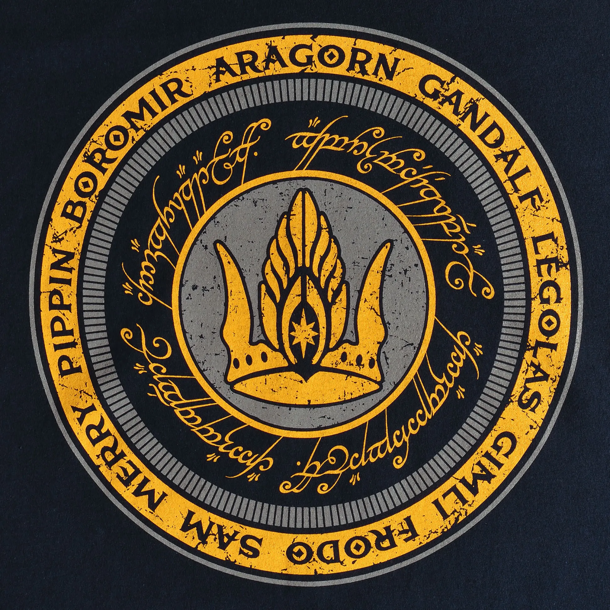 - Motief kroon van Gondor met De Ene Ring en de metgezellen