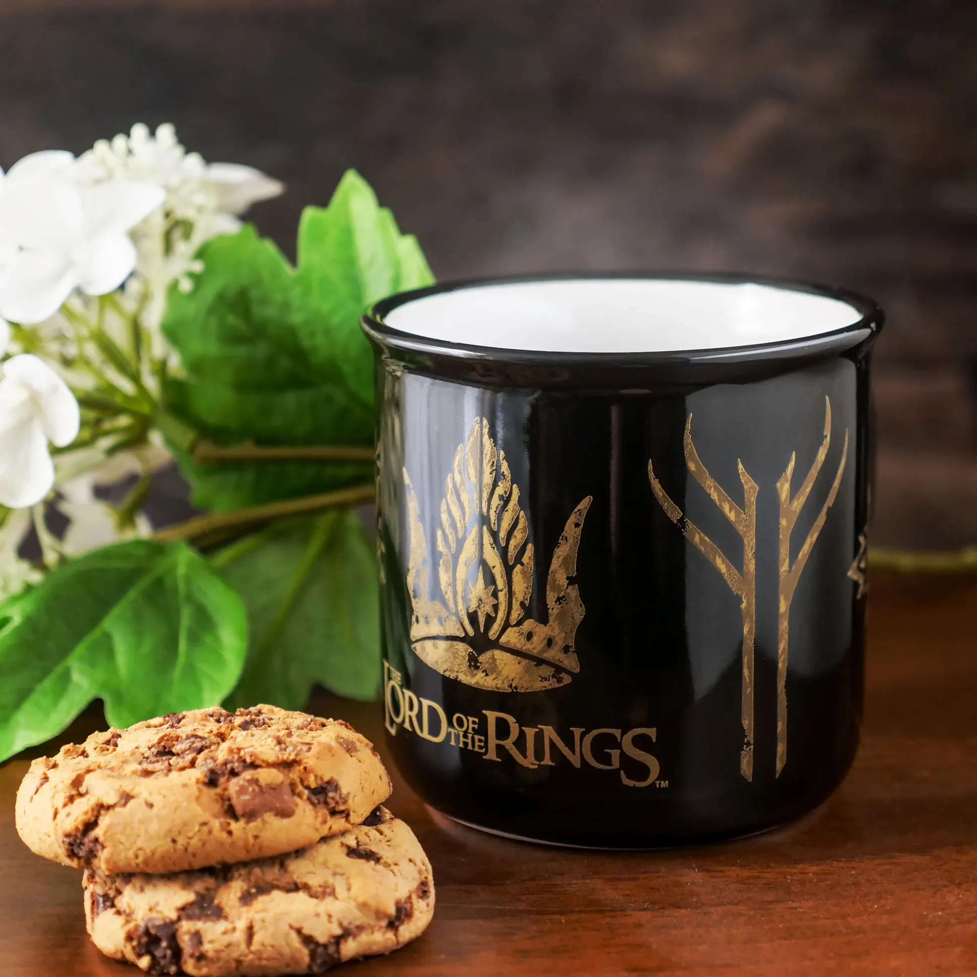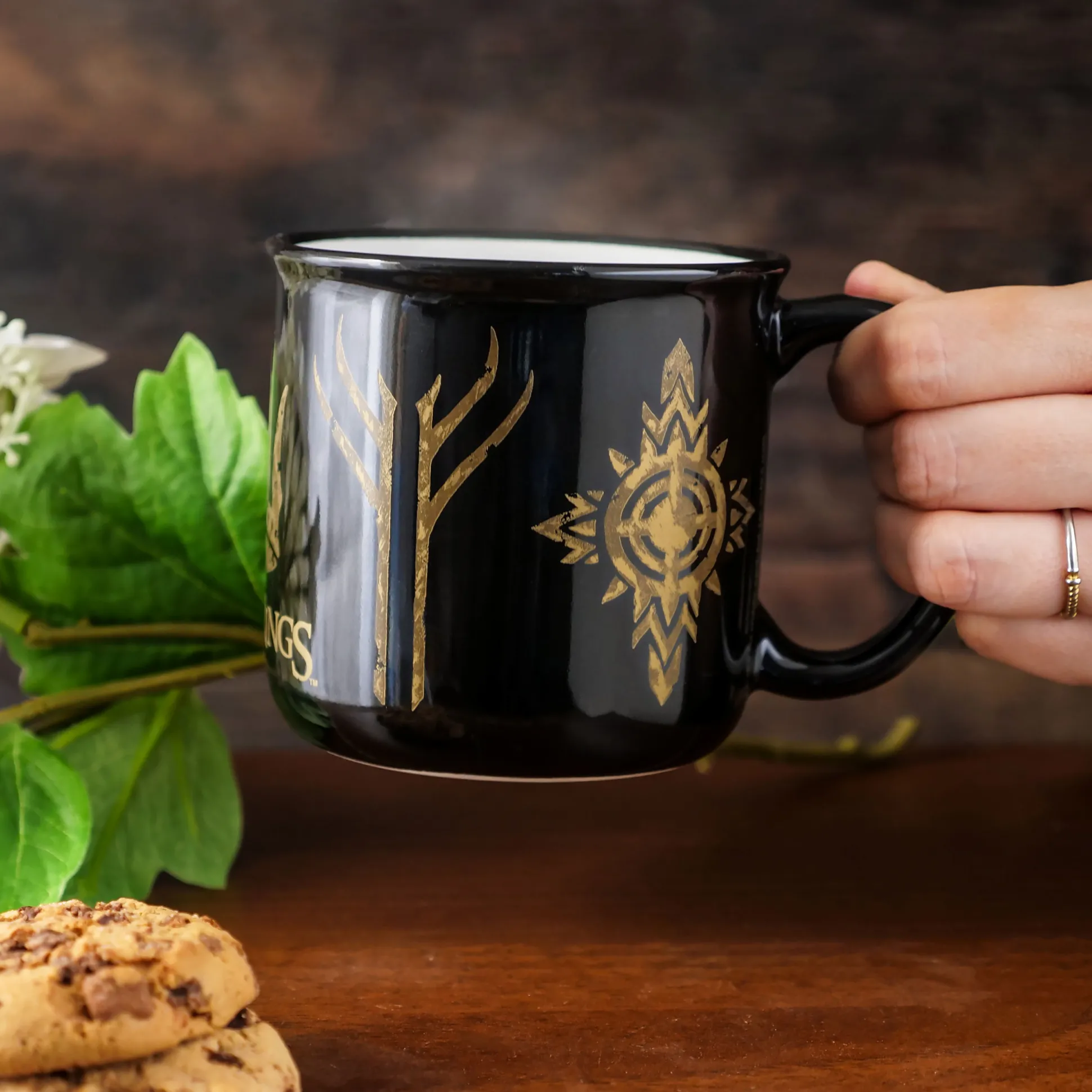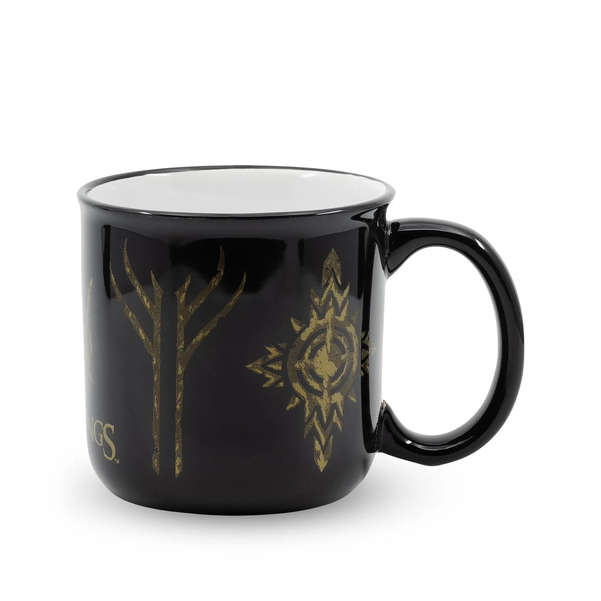 ’s Ochtends nog half in Mordor? Deze officieel gelicentieerde In de Ban van de Ring-mok haalt Midden-aarde naar je ontbijt: bedrukt met verschillende symbolen — waaronder de Witte Boom van Gondor en de Kroon van Gondor. Buitenkant zwart, binnenkant helder wit: een contrast zoals een goed epos.