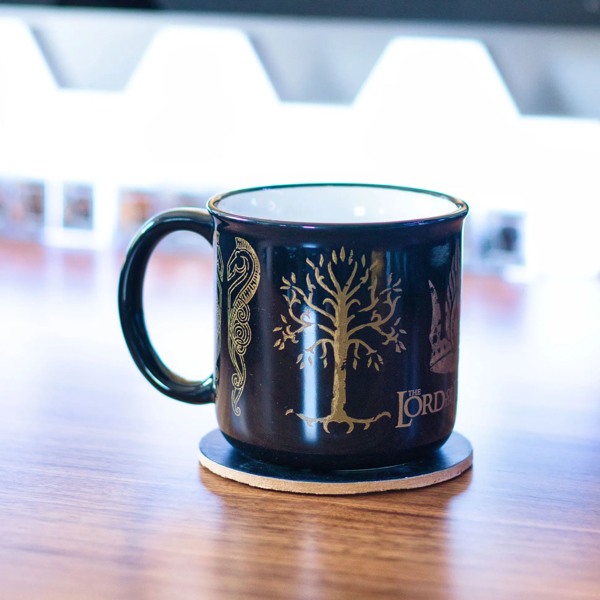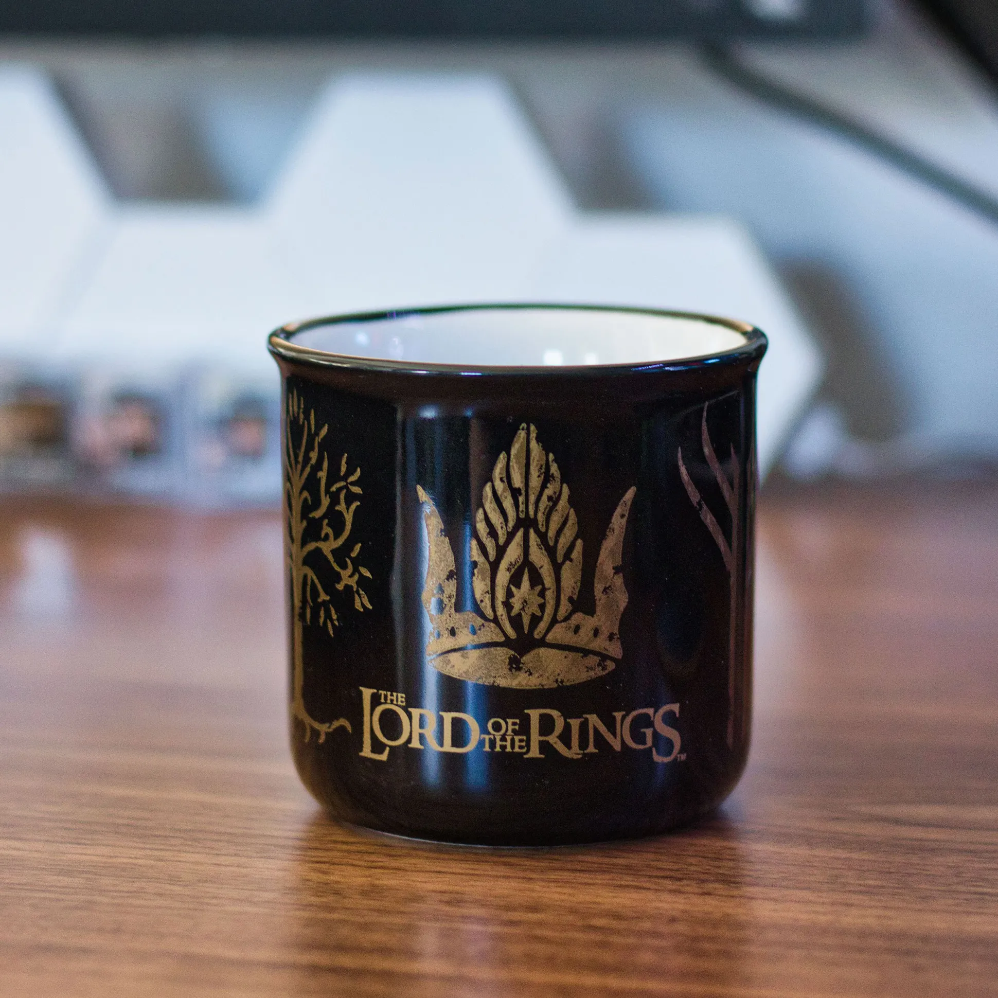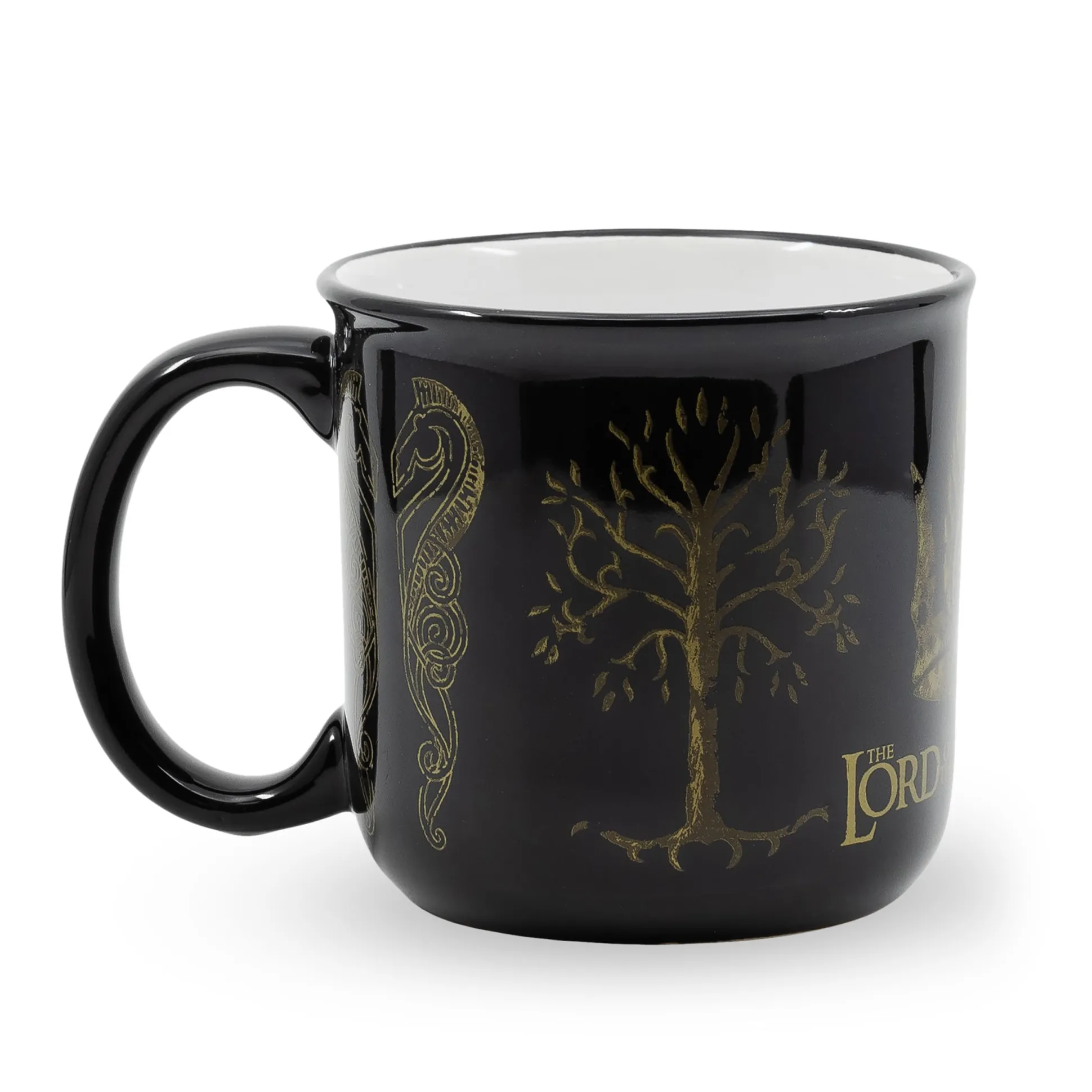 ’s Ochtends nog half in Mordor? Deze officieel gelicentieerde In de Ban van de Ring-mok haalt Midden-aarde naar je ontbijt: bedrukt met verschillende symbolen — waaronder de Witte Boom van Gondor en de Kroon van Gondor. Buitenkant zwart, binnenkant helder wit: een contrast zoals een goed epos.