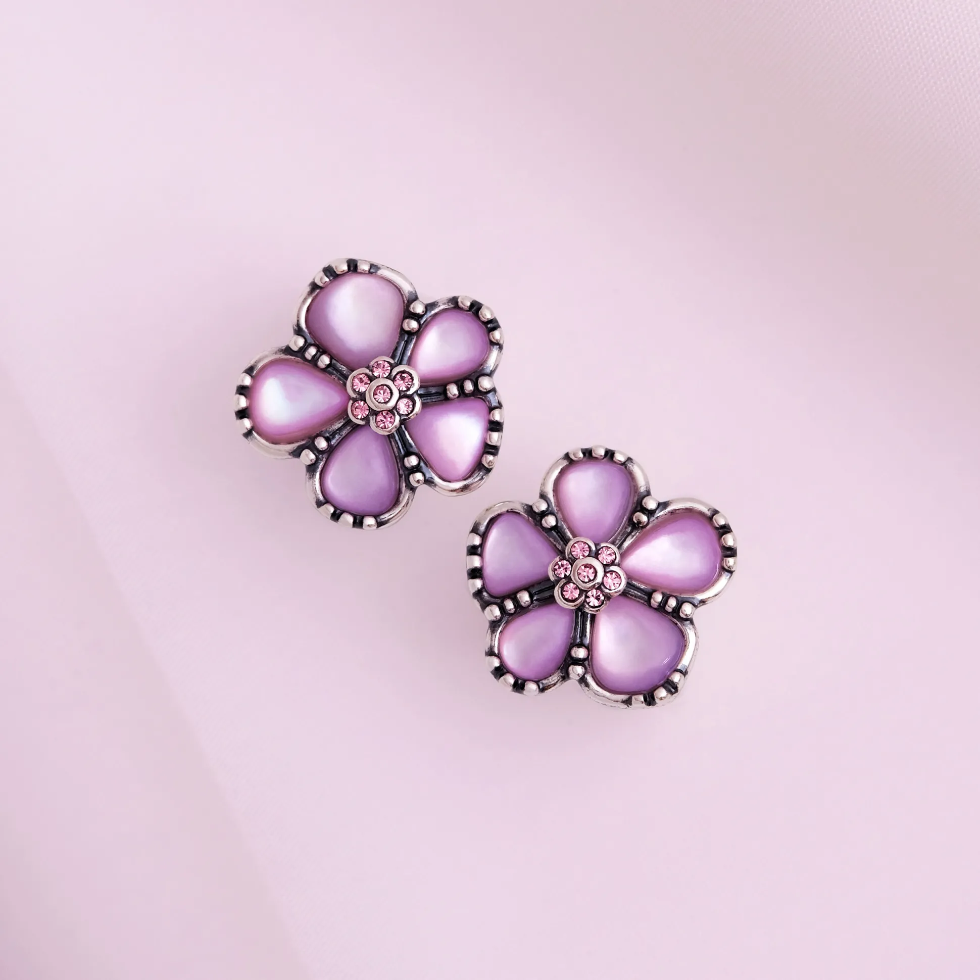 Gevormd uit luchtig-lichte bloemen, laten de oorbellen Hermione schitteren op het kerstbal en maken ze niet alleen indruk op haar begeleider Victor Krum. In het midden van de bloemen schitteren roze kristallen en breken het licht van de kroonluchters duizend keer.