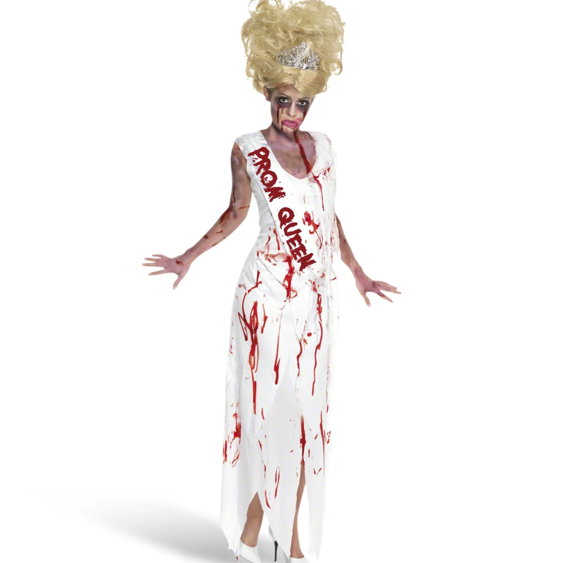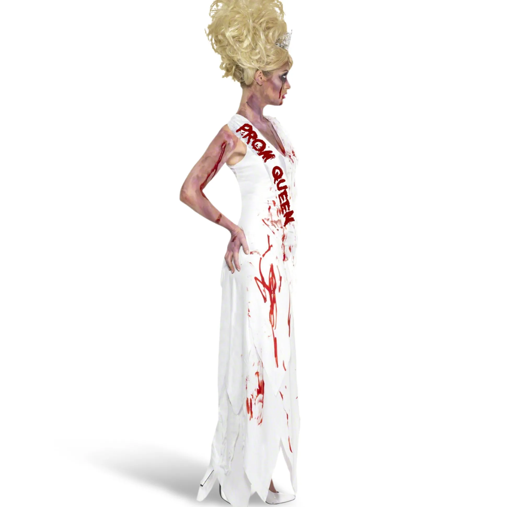 De onmiskenbare bloedsporen maken op het eerste gezicht duidelijk waar de dame zich mee voedt. Afgezien van de bloedsporen, maakt het horror kostuum, bestaande uit een lange jurk met aangenaaide sjerp, een behoorlijke indruk, ziet er nobel uit en zal de menigte imponeren.