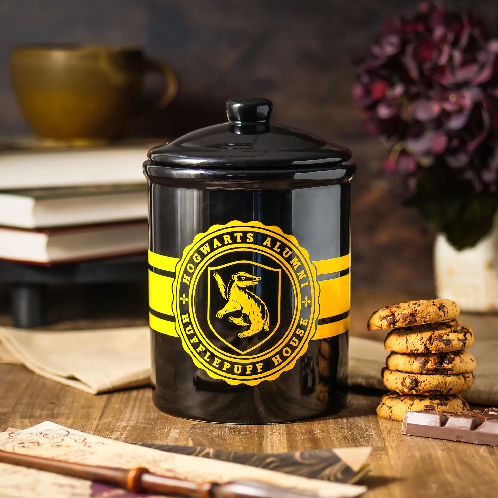 Voor iedereen die bij Huffelpuf hard studeert en nog harder snackt: deze officieel gelicentieerde Harry Potter koektrommel laat je voluit gaan als Huffelpuf Alumni — met het wapenlogo voorop. Het deksel met afdichtring houdt je koekjes, Chocokikkers en andere lekkernijen vers, of je nu in de gemeenschappelijke ruimte, op kantoor of in de keuken bent. Zwart‑geel, vaatwasmachinebestendig en ruim genoeg voor je volgende feestje thuis: 1,4 l inhoud bij 12,5 x 21,5 x 12,5 cm. Trouw gaat door de maag — dus bewaar alles waar een dassenhart naar verlangt.
