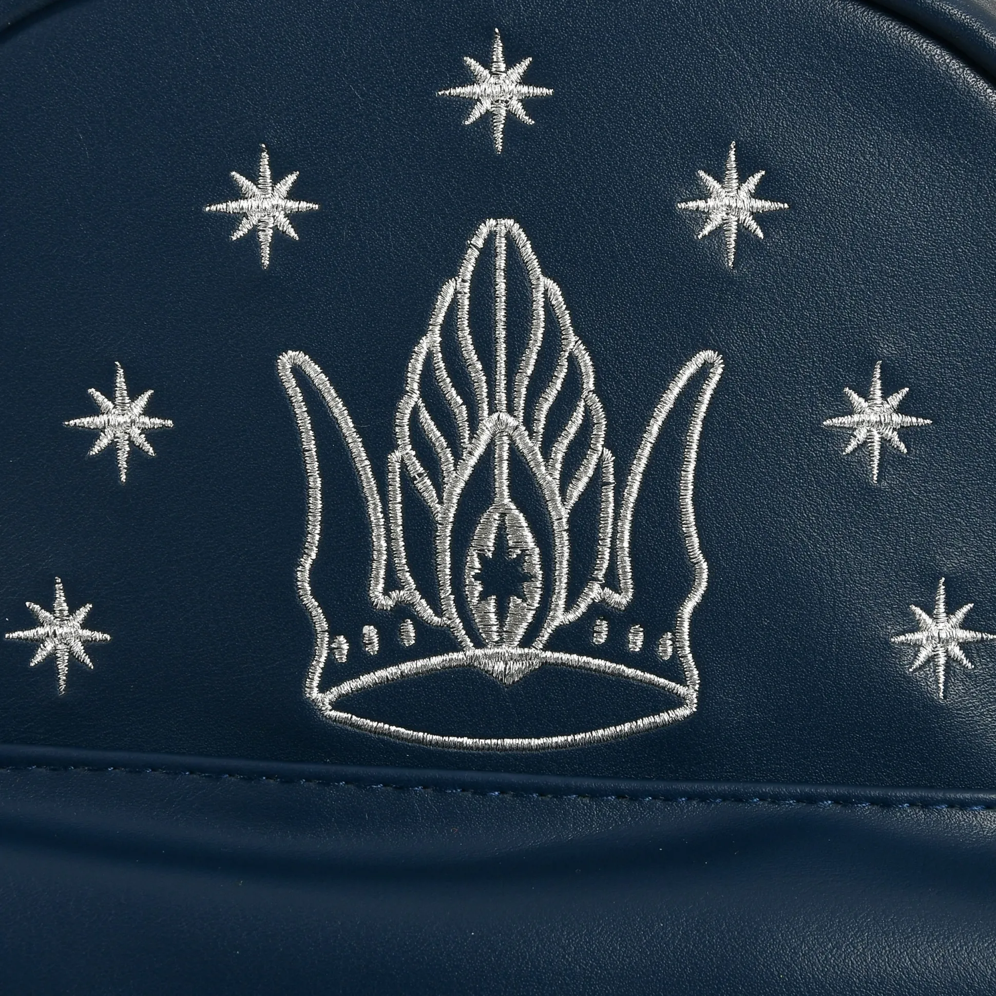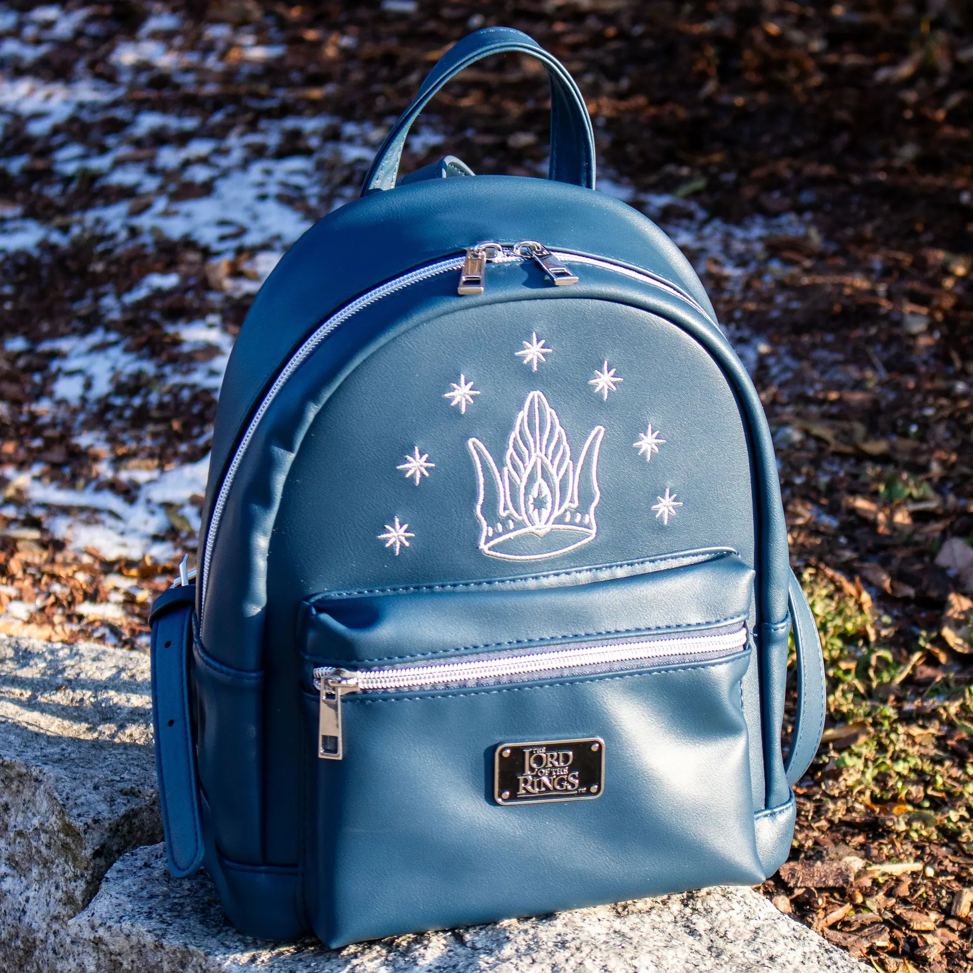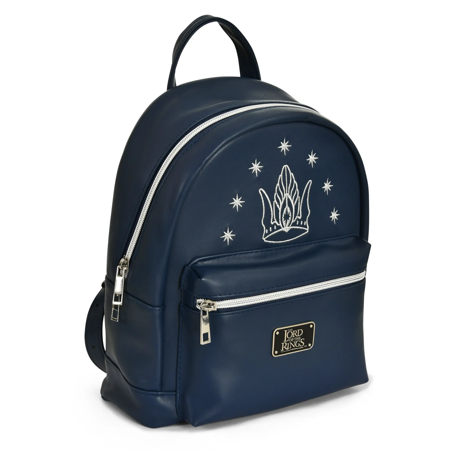 Alle hulde aan de terugkeer van de koning—nu in rugzakvorm. Deze officieel gelicentieerde In de ban van de ring mini-rugzak kroont je outfit met Aragorns kroon, netjes in zilver geborduurd op diepblauw. Van buiten compact, van binnen heldhaftig: het hoofdvak bergt je essentials en heeft een klein insteekvak; plus ritsvakken voor en achter voor schatten, snacks of geheime erfstukken.